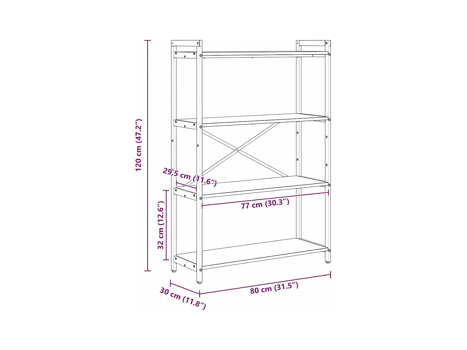 Étagère à 5 niveaux 80x30x146 cm bois de chêne massif