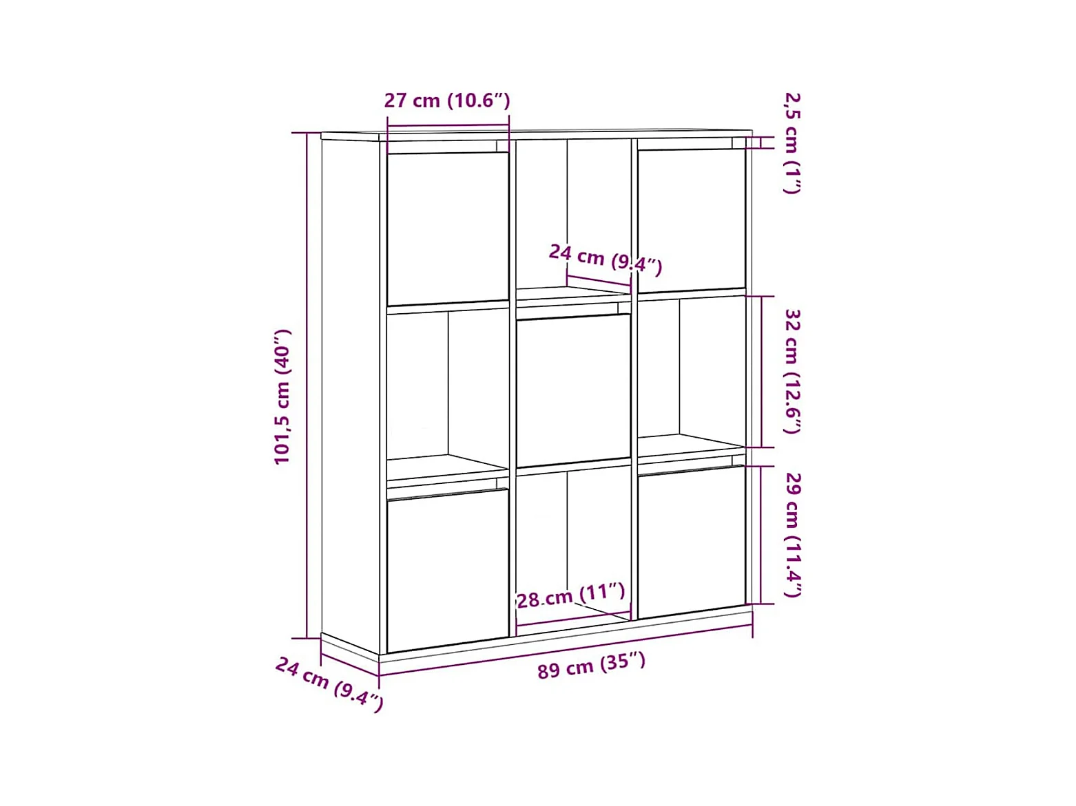 Bibliothèque sonoma gris 89x24x101,5 cm bois d'ingénierie