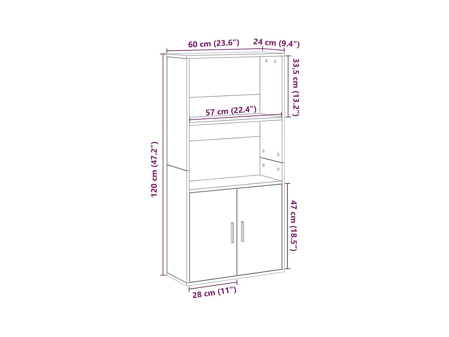 Bibliothèque chêne fumé 60x24x120 cm bois d'ingénierie