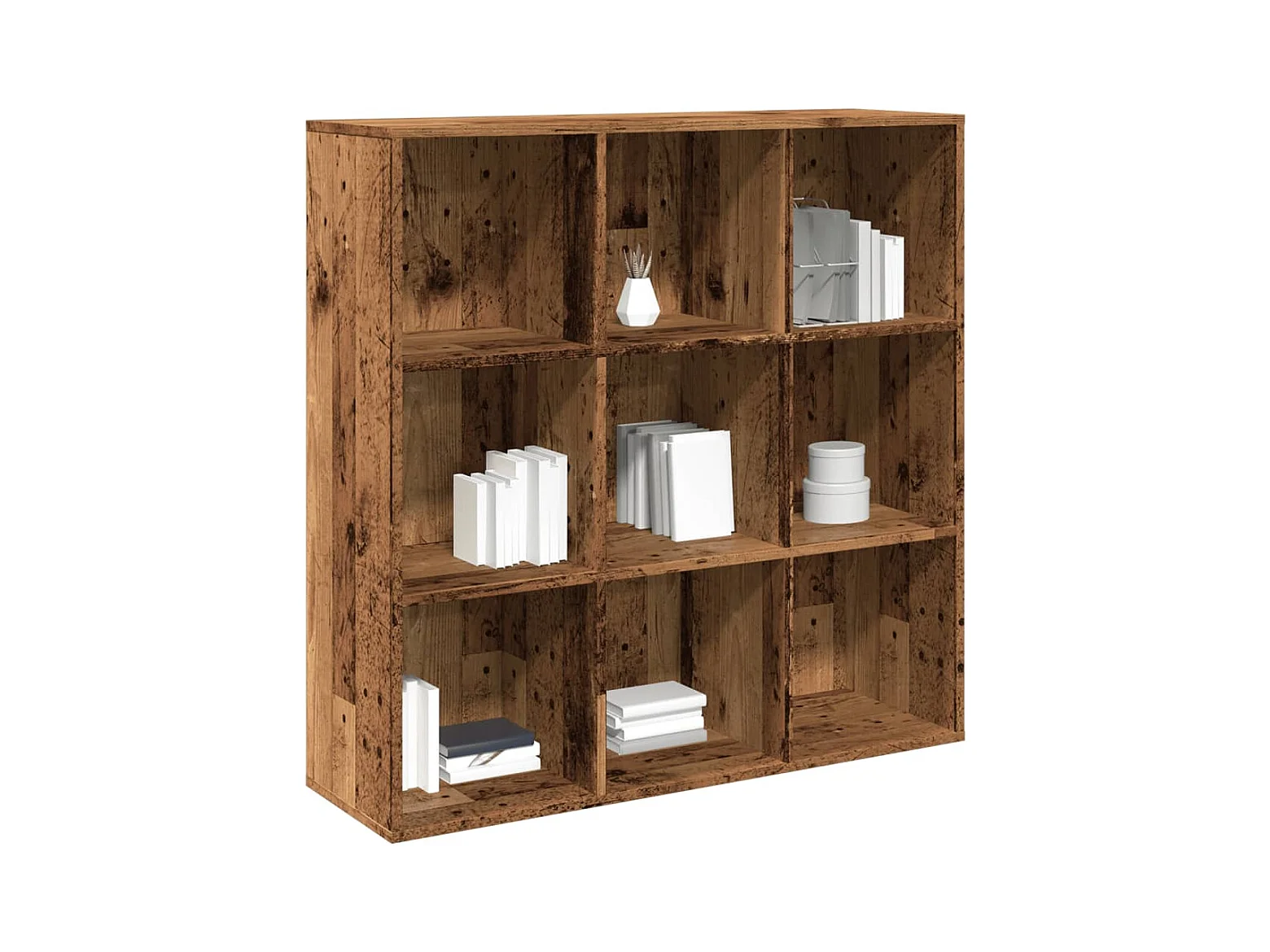 Bibliothèque séparatrice de pièce à 3 niveaux vieux bois 99x29x99 cm