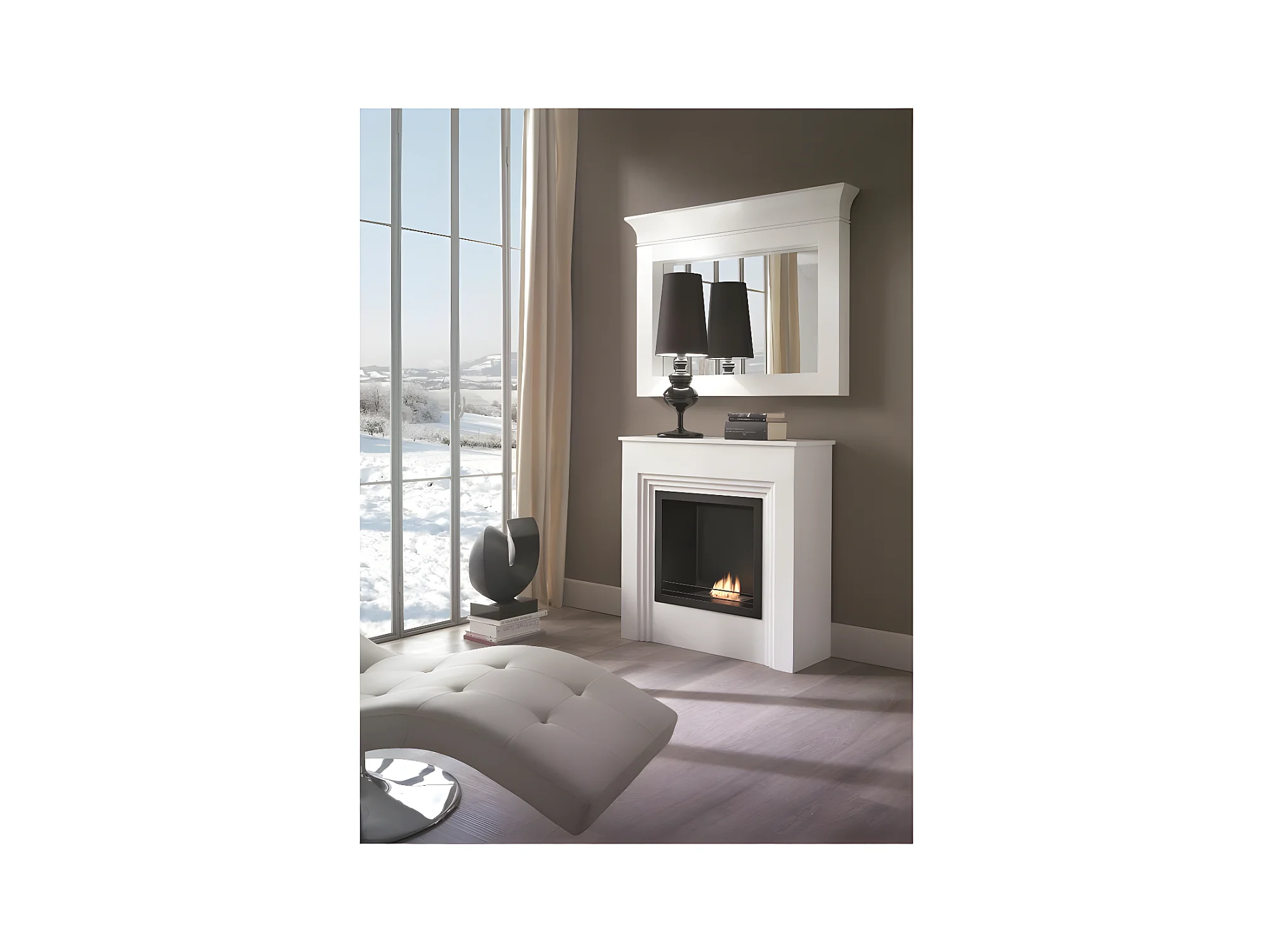 Cheminée à bioéthanol en bois blanc Michelangelo 96x36x90h