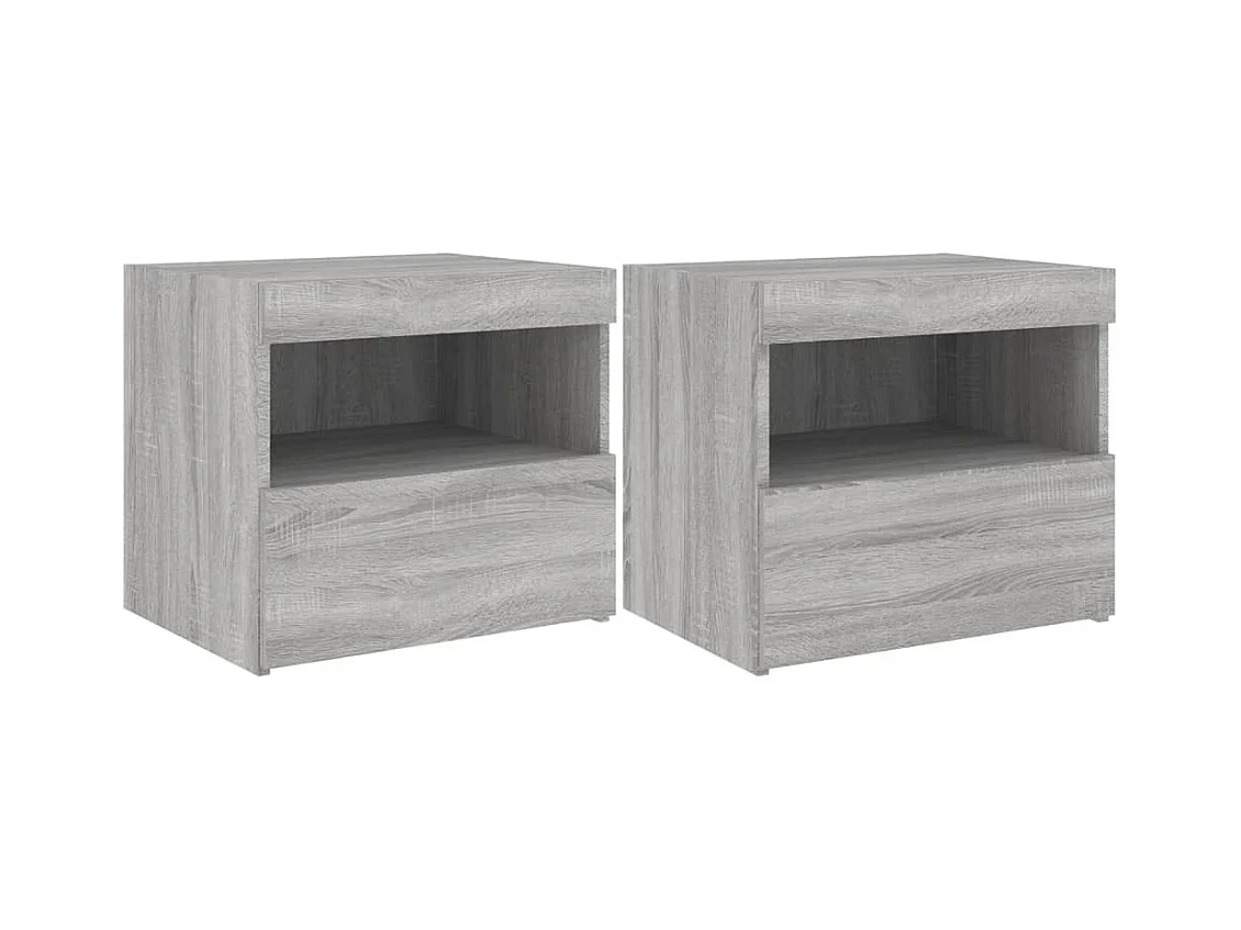 Bishop Tables de chevet avec lumières LED 2 pcs sonoma gris 50x40x45cm