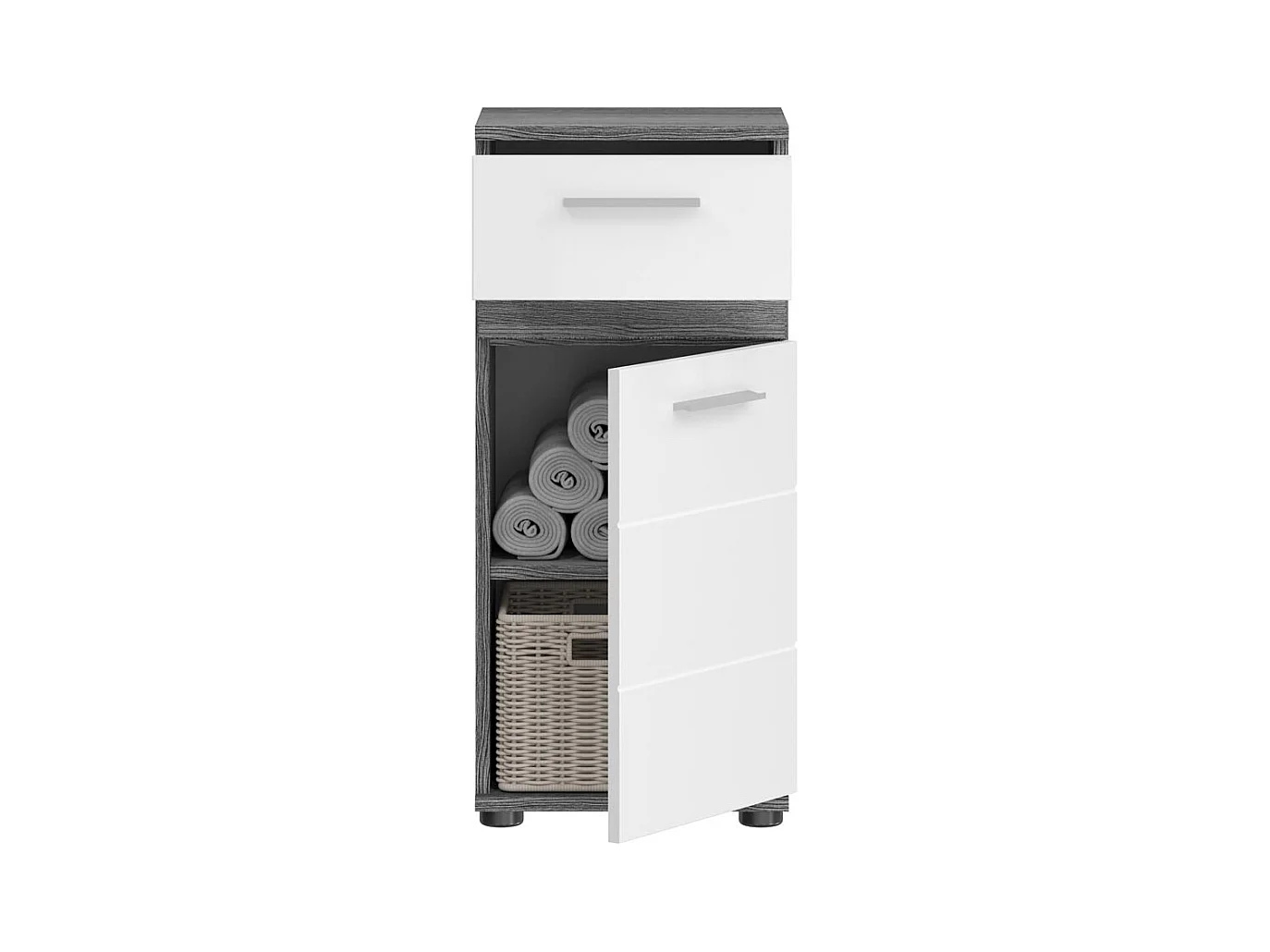 Lambada armoire de salle de bain 1 porte, 1 tiroir brillant blanc,chêne décor.