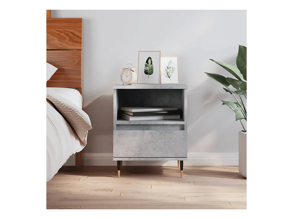 Rinald Table de chevet gris béton 40x35x50 cm bois d’ingénierie