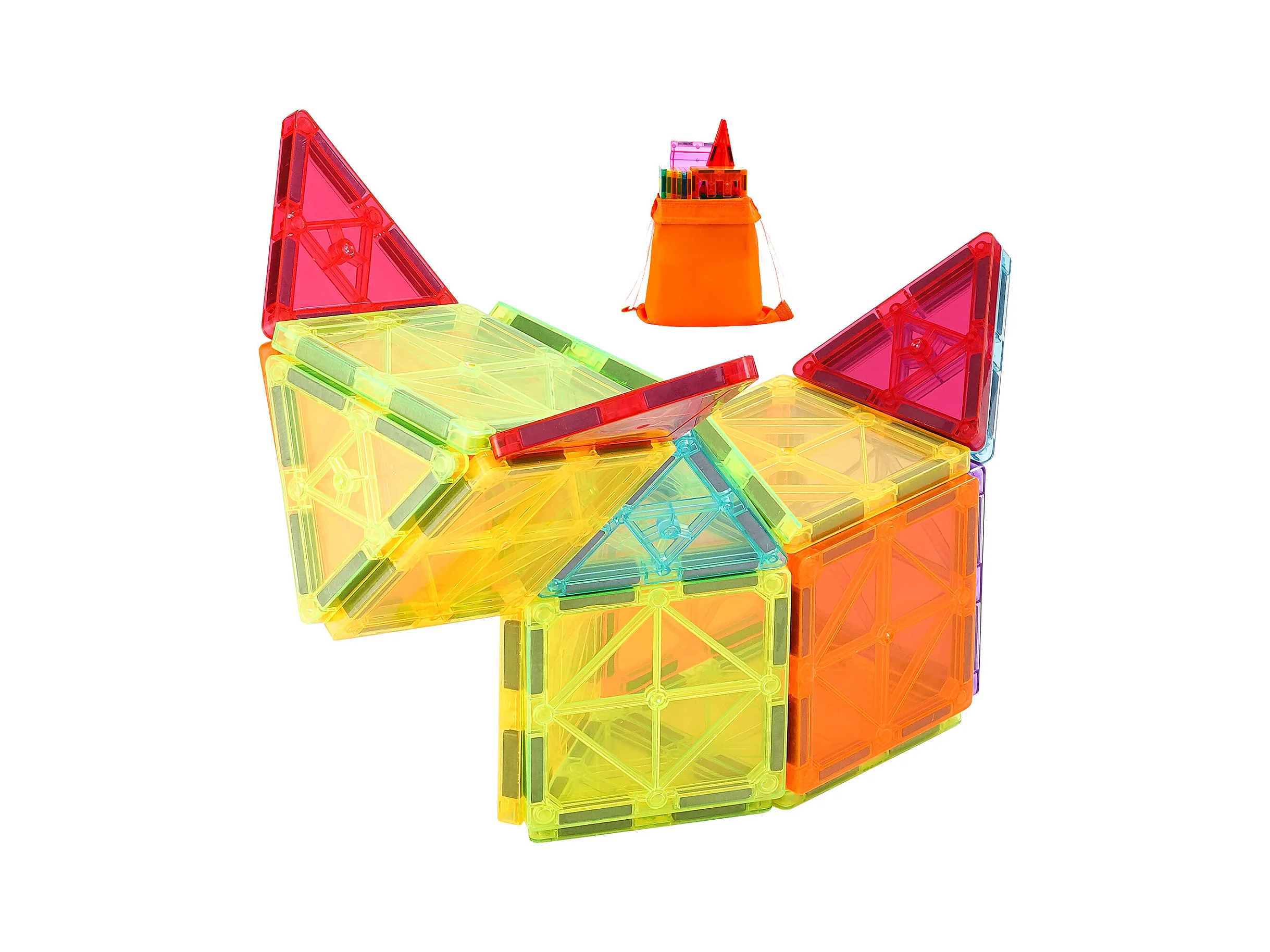 Bloc de Construction Magnétique, SucceBuy Lot de 56 Tuiles Magnétiques, Blocs de Construction Magnétiques 3D pour Enfants, Ensemble de Jouets STEM
