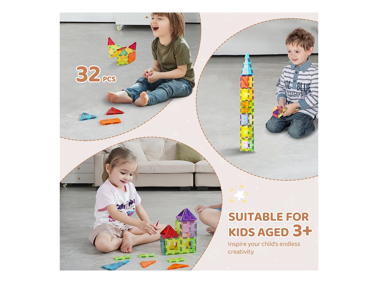 Blocs de Construction Magnétiques SucceBuy 32 PCS, Jouets Éducatifs à Empiler pour Enfants, Jouet 3D, avec Sac de Rangement