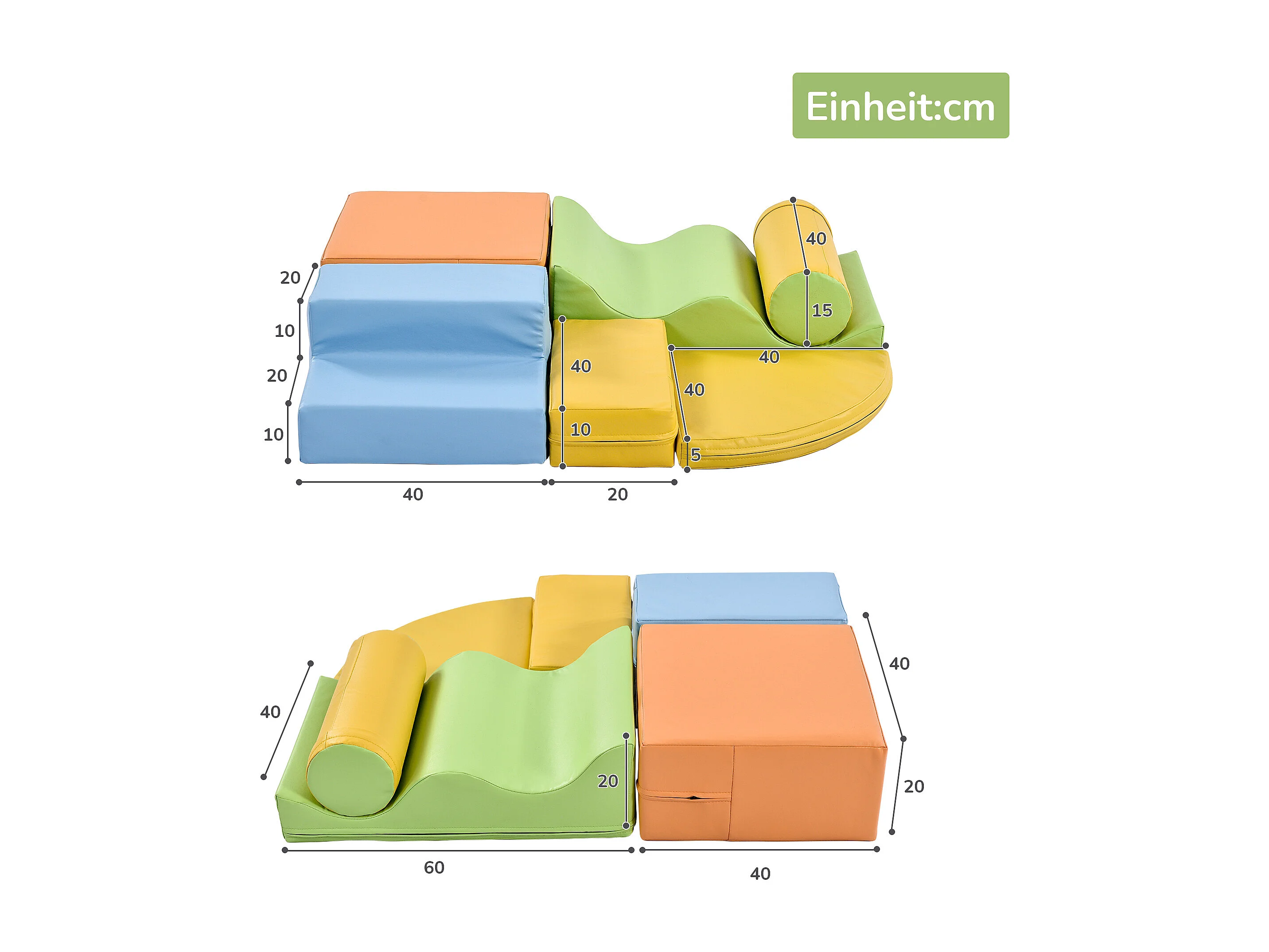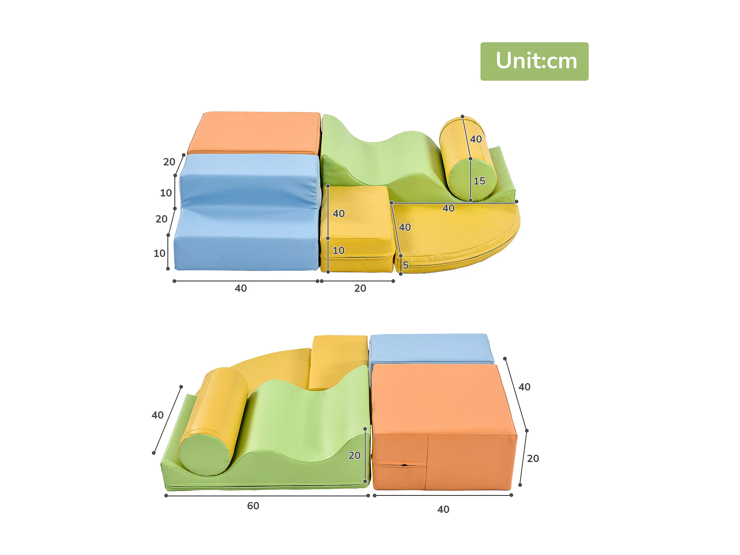 Blocs de mousse 60x40x20cm 6 Pièces Escalier et Toboggan pour Enfants Blocs de Construction Matériel PU couleur