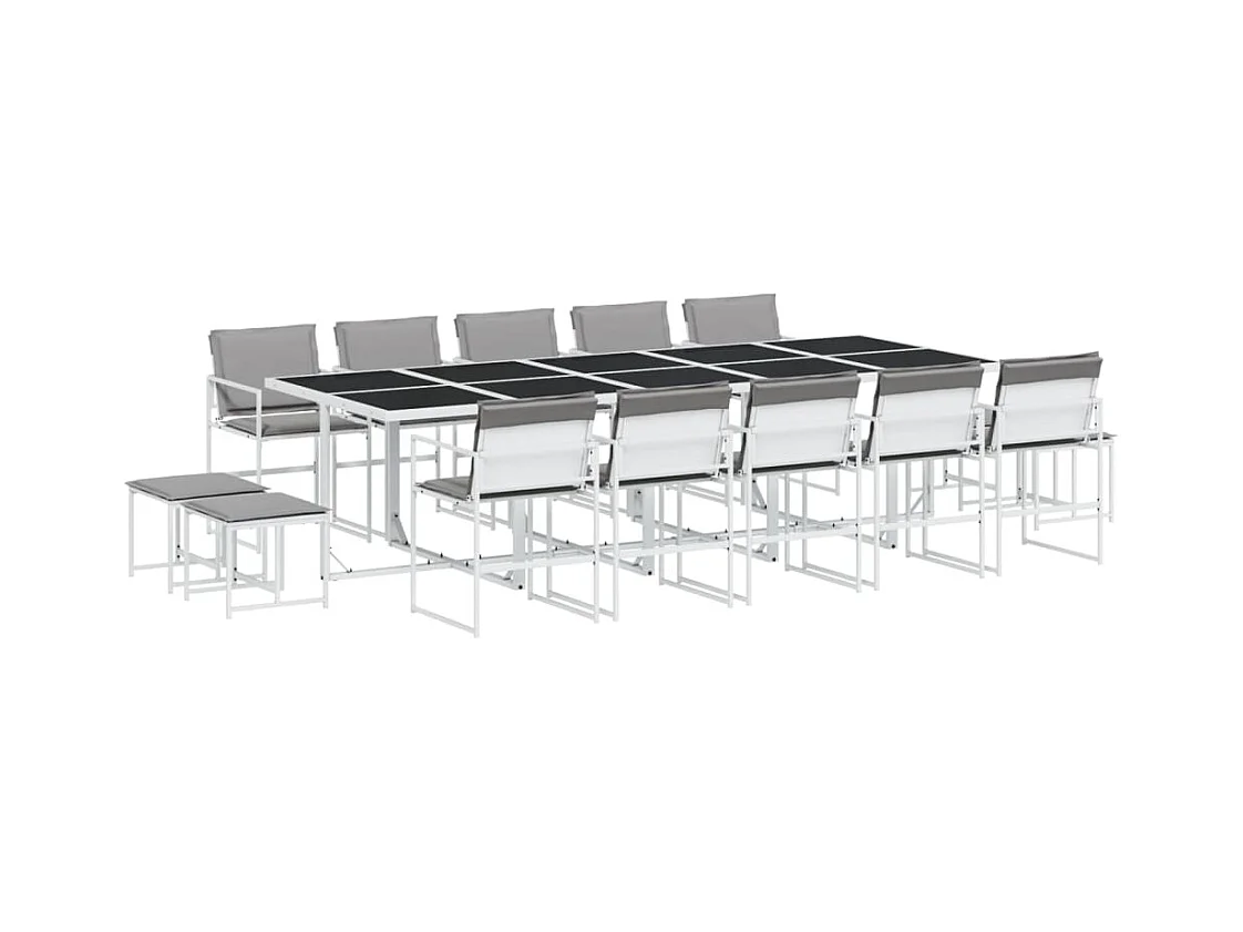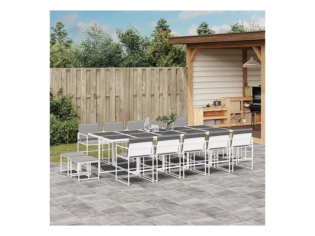 Dunkitt Ensemble à manger de jardin avec coussins 15pcs blanc textilène