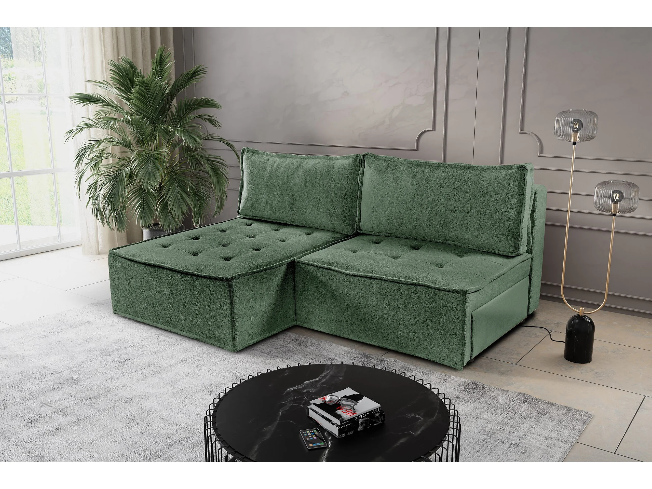 Bohoo Mini canapé d'angle avec fonction couchage, tissu Raven, vert clair, gauche