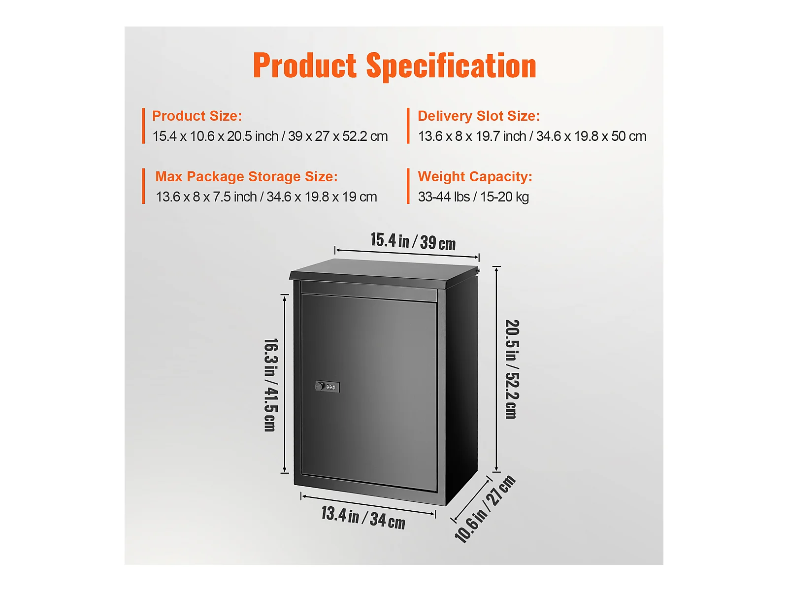 Boîte aux Lettres SucceBuy Boîte de Livraison de Colis Extérieure Verrouillable, 119 cm, Boîte de Dépôt Sécurisée