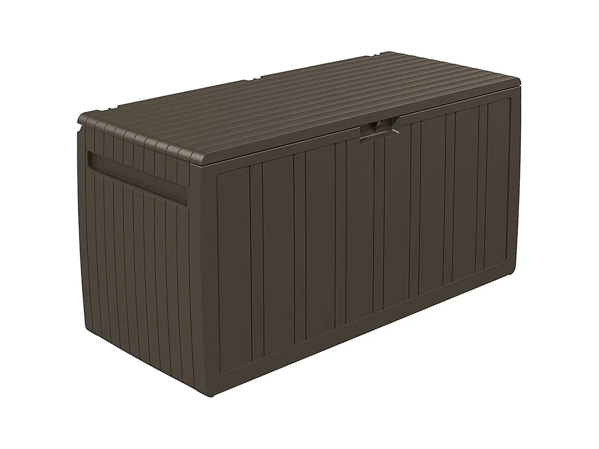 Boîte de rangement de jardin résine tressée 100x50x50 cm marron