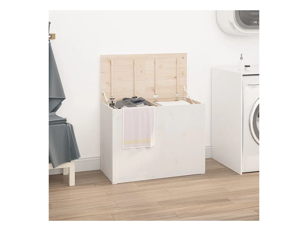 Boîte à linge Blanc 88,5x44x66 cm Bois massif de pin