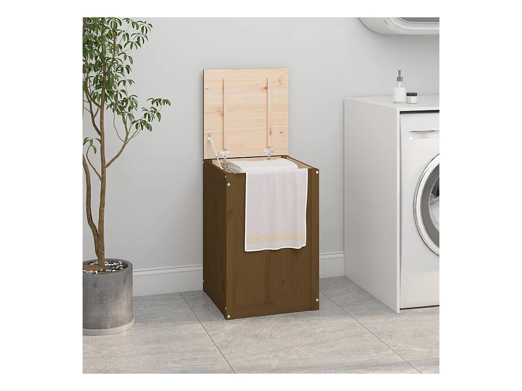 Boîte à linge Marron miel 88,5x44x76 cm Bois massif de pin