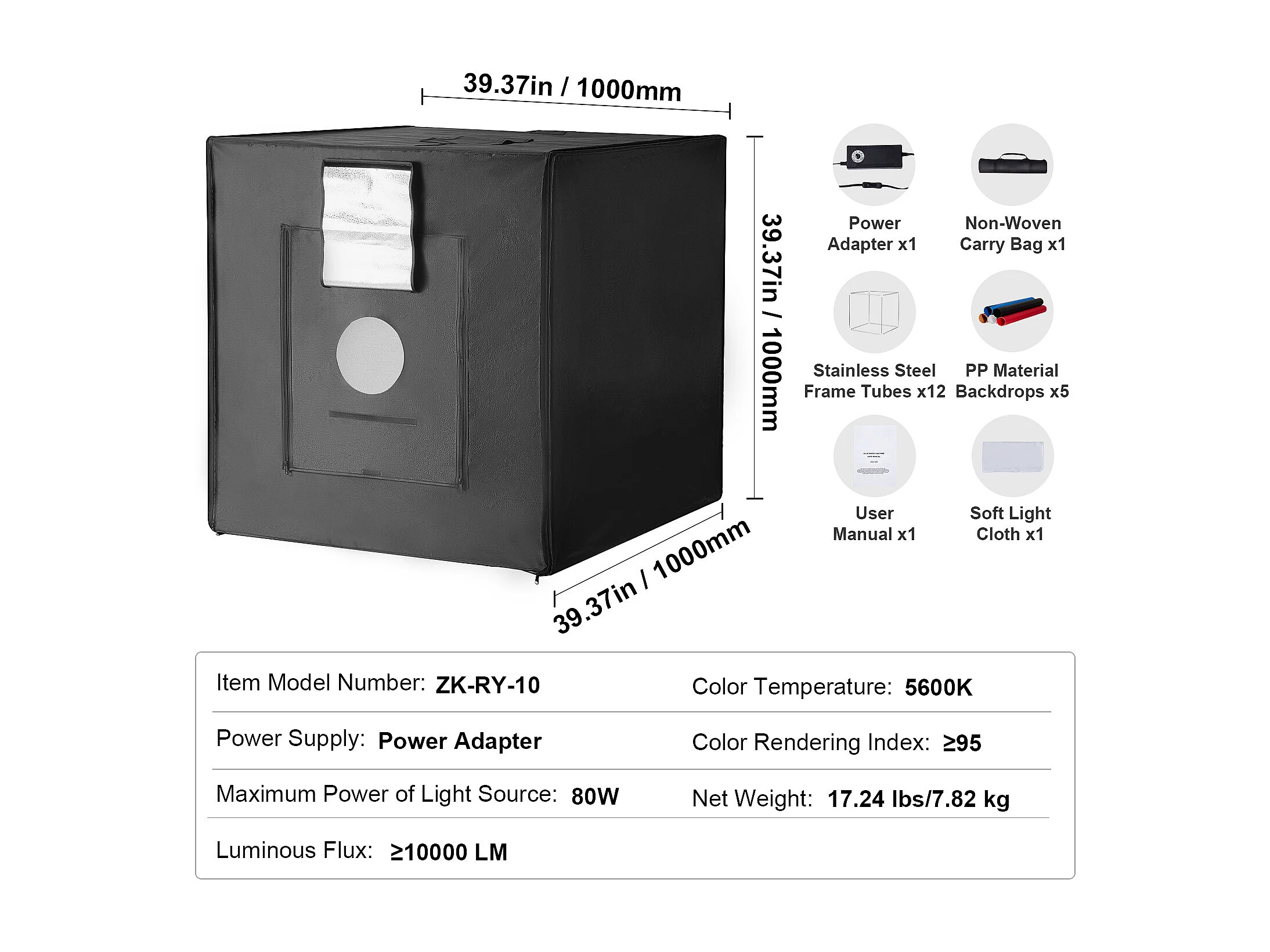 Boîte à Lumière Studio Photo SucceBuy, 100x100 cm, 5600 K, 210 Lumières LED