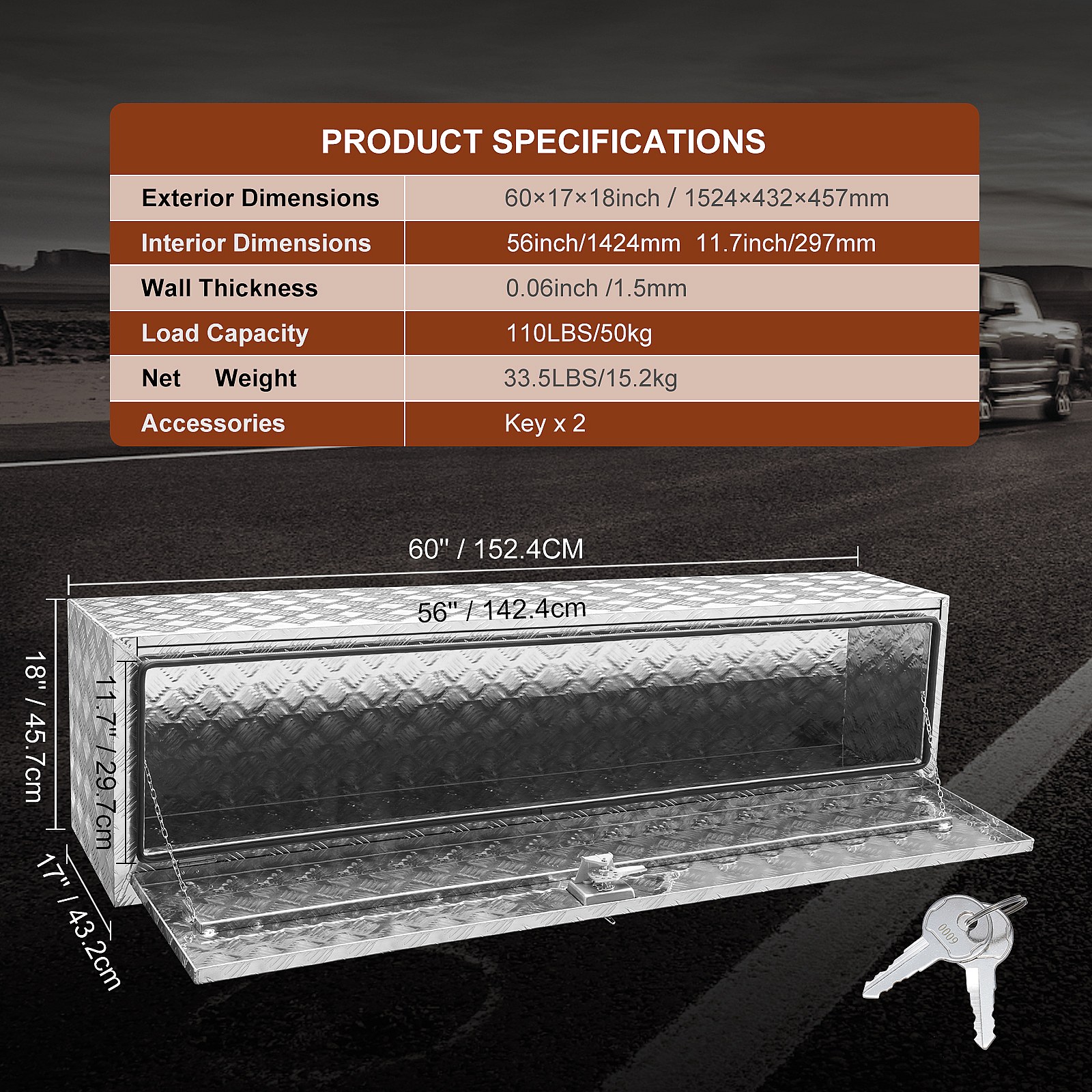 Boîte à Outils en Aluminium pour Sous-Caisse de Camion SucceBuy, 152,4×43,2×45,7 cm, pour Remorque RV