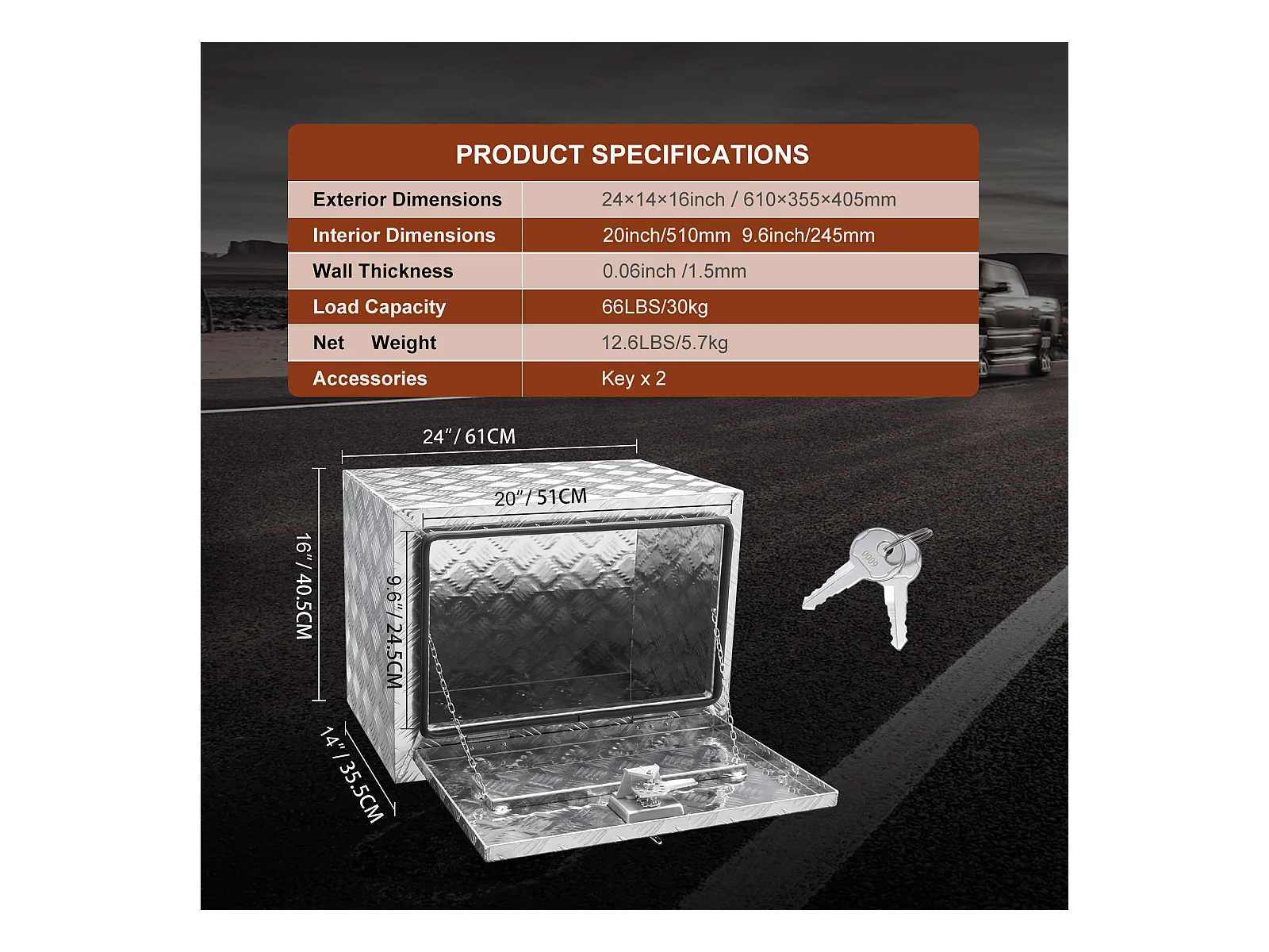 Boîte à Outils SucceBuy Boîte à Outils pour Camion Sous Caisse en Aluminium 60.96 x 35.56 x 40.64 cm, pour Remorque RV
