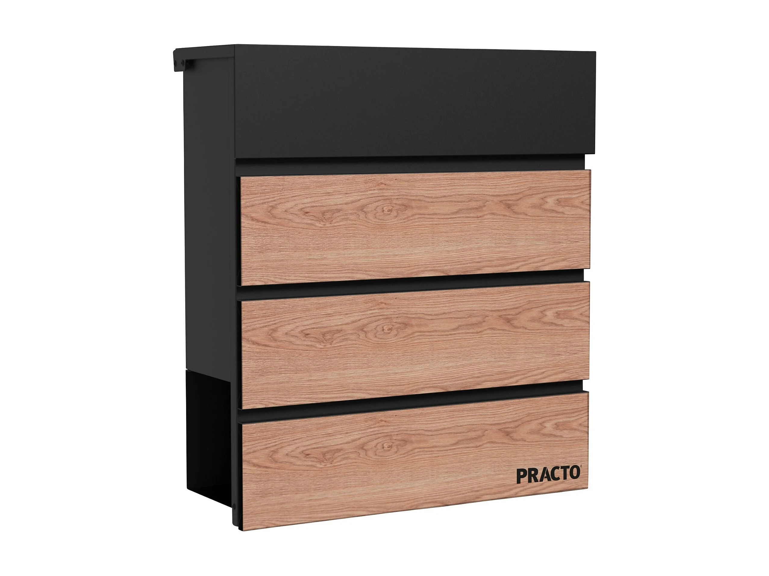 Boîte aux lettres murale CANNES Noir mat et bois avec porte-journaux et serrure à clé