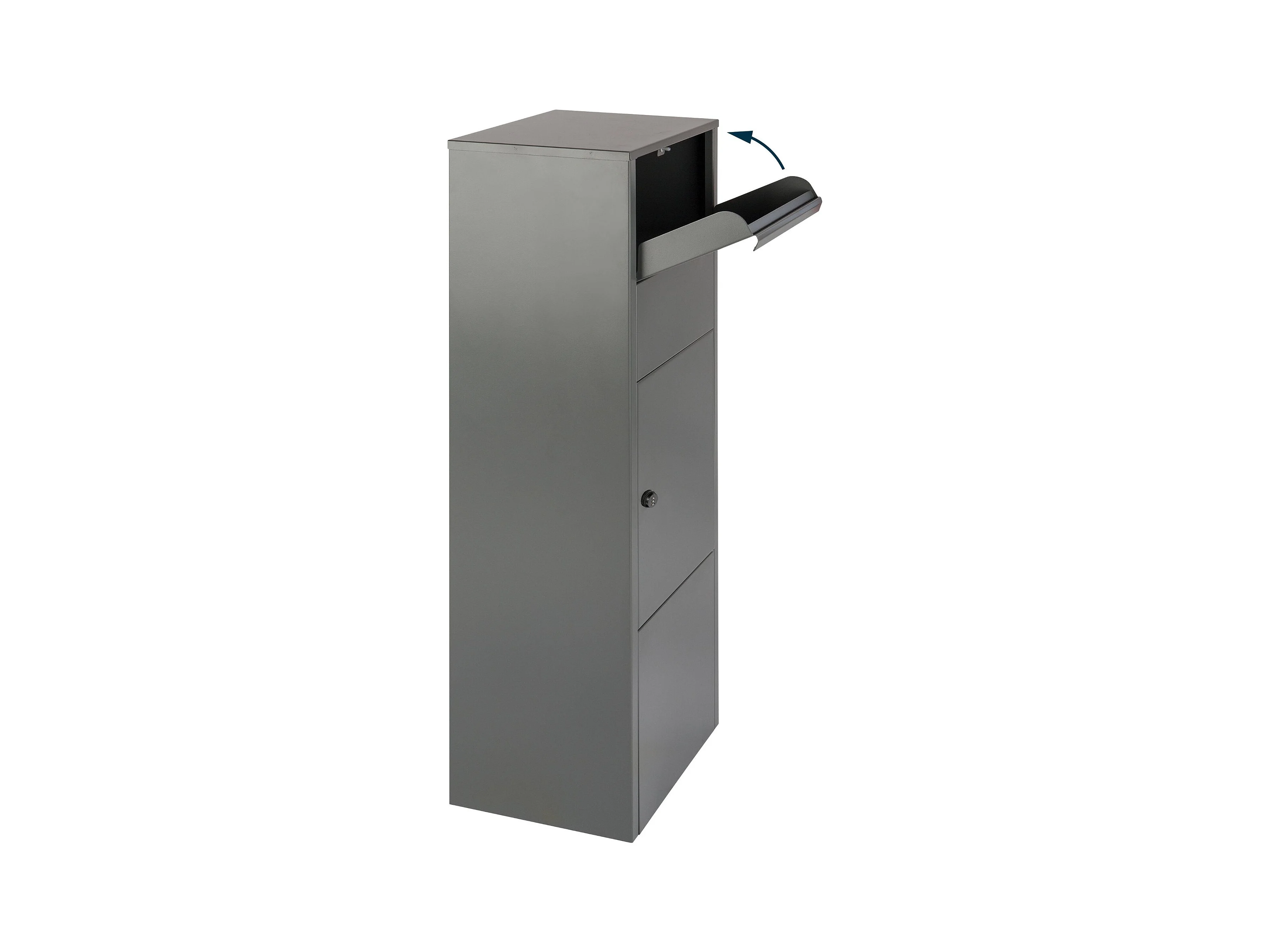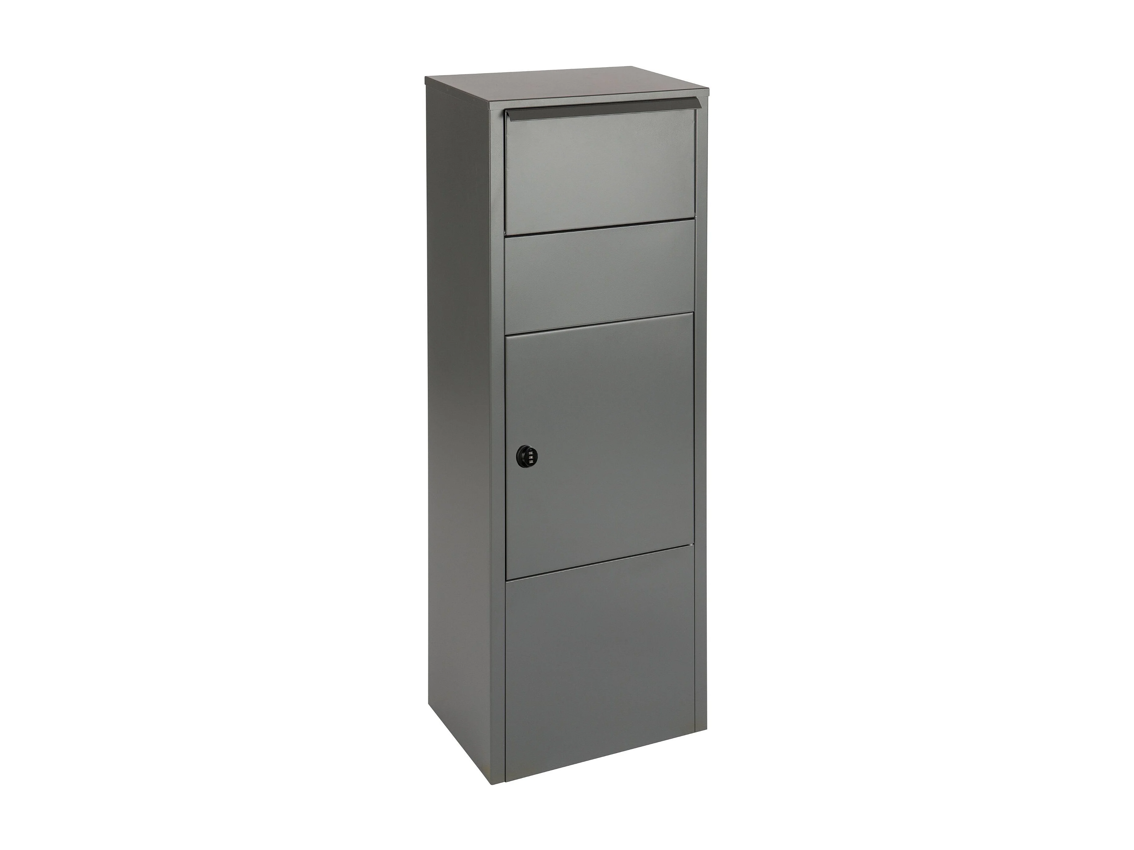 Boîte aux lettres pour paquets – Colonne gris mat – Grande ouverture – Fixation au sol – Serrure à clé