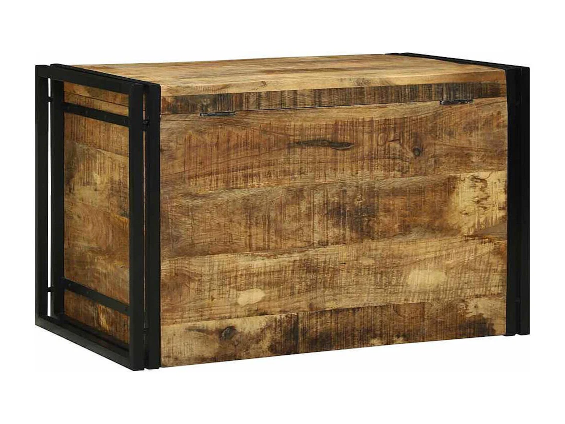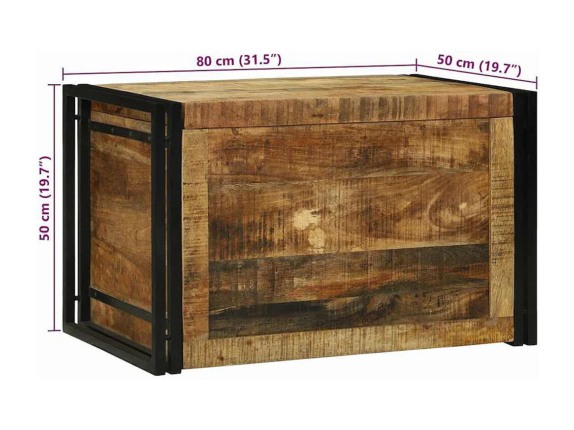 Boîte de Rangement 80 x 50 x 50 cm Bois de mangue brut et métal