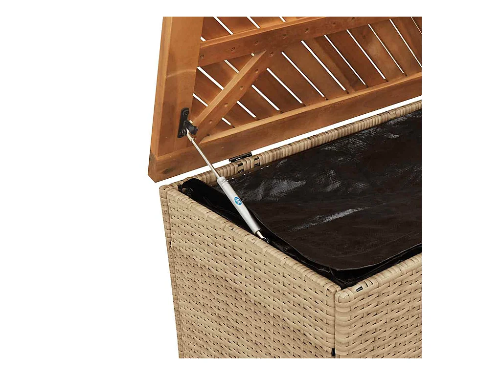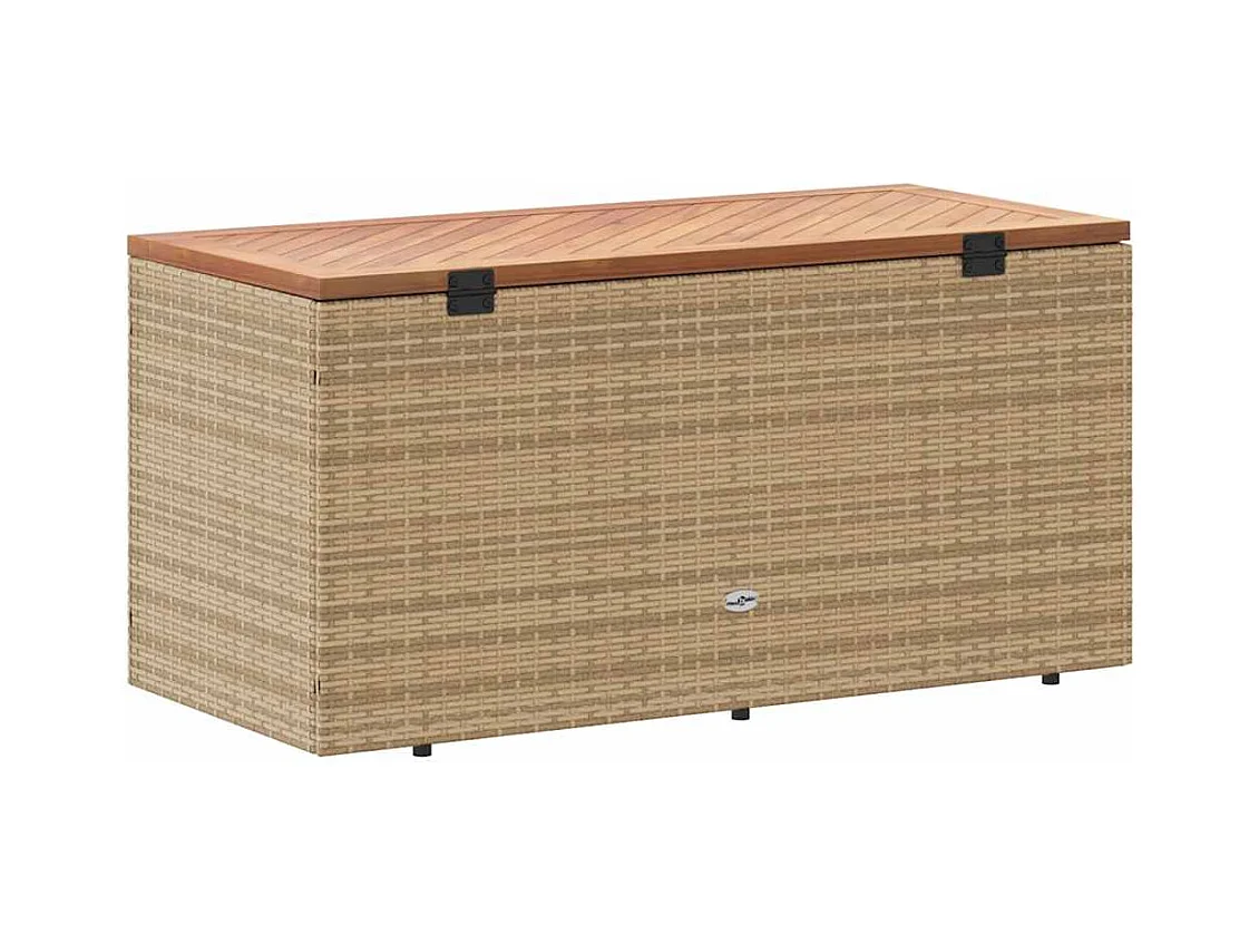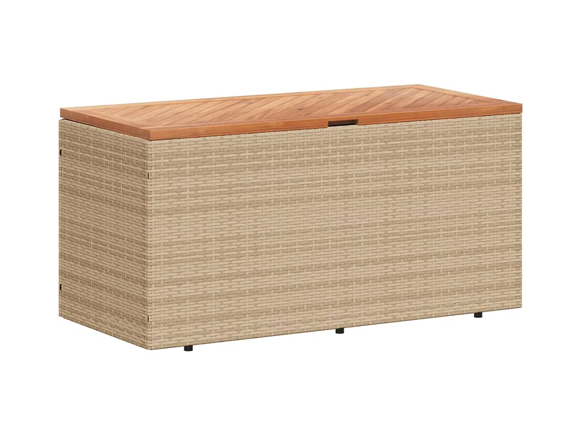 Boîte de rangement de jardin beige résine tressée bois d'acacia