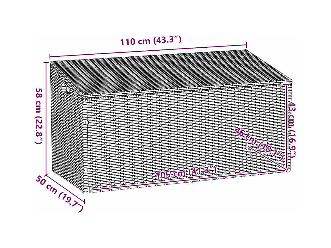 Boîte de rangement de jardin gris 110x50x58 cm résine tressée