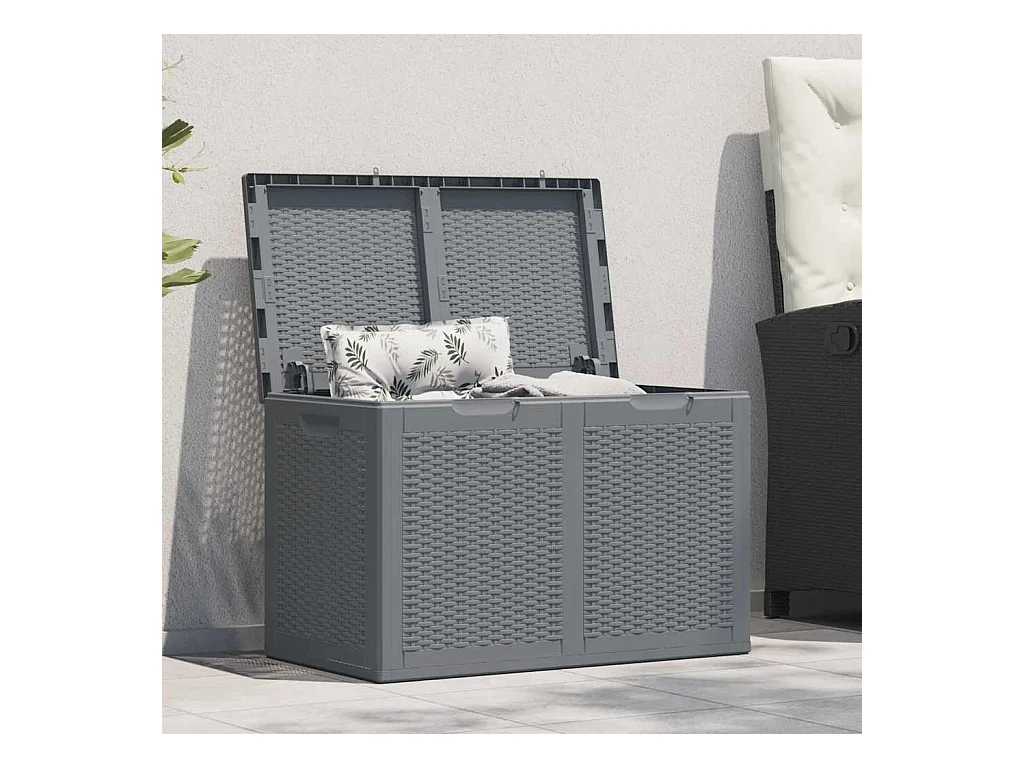 Boîte de Rangement Extérieure Grise et Grise Foncée Rotin Grande