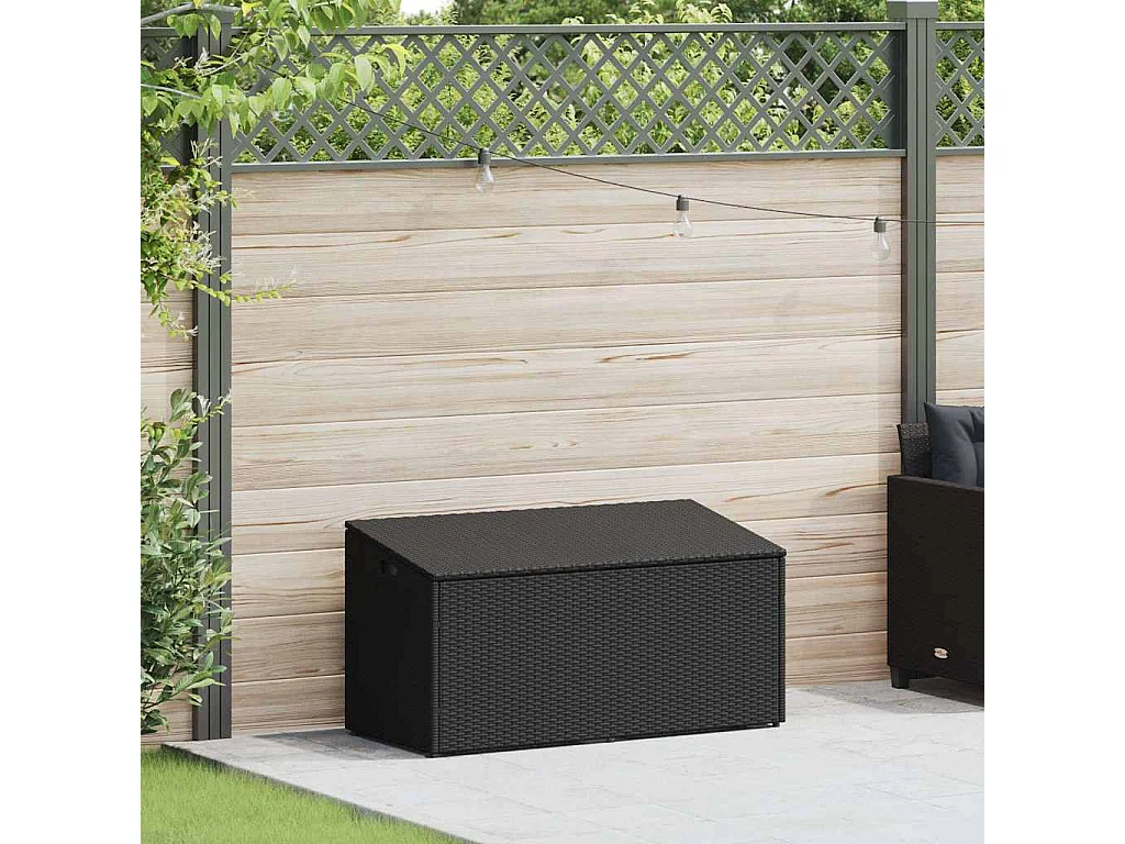 Boîte de rangement de jardin noir 110x50x58 cm résine tressée
