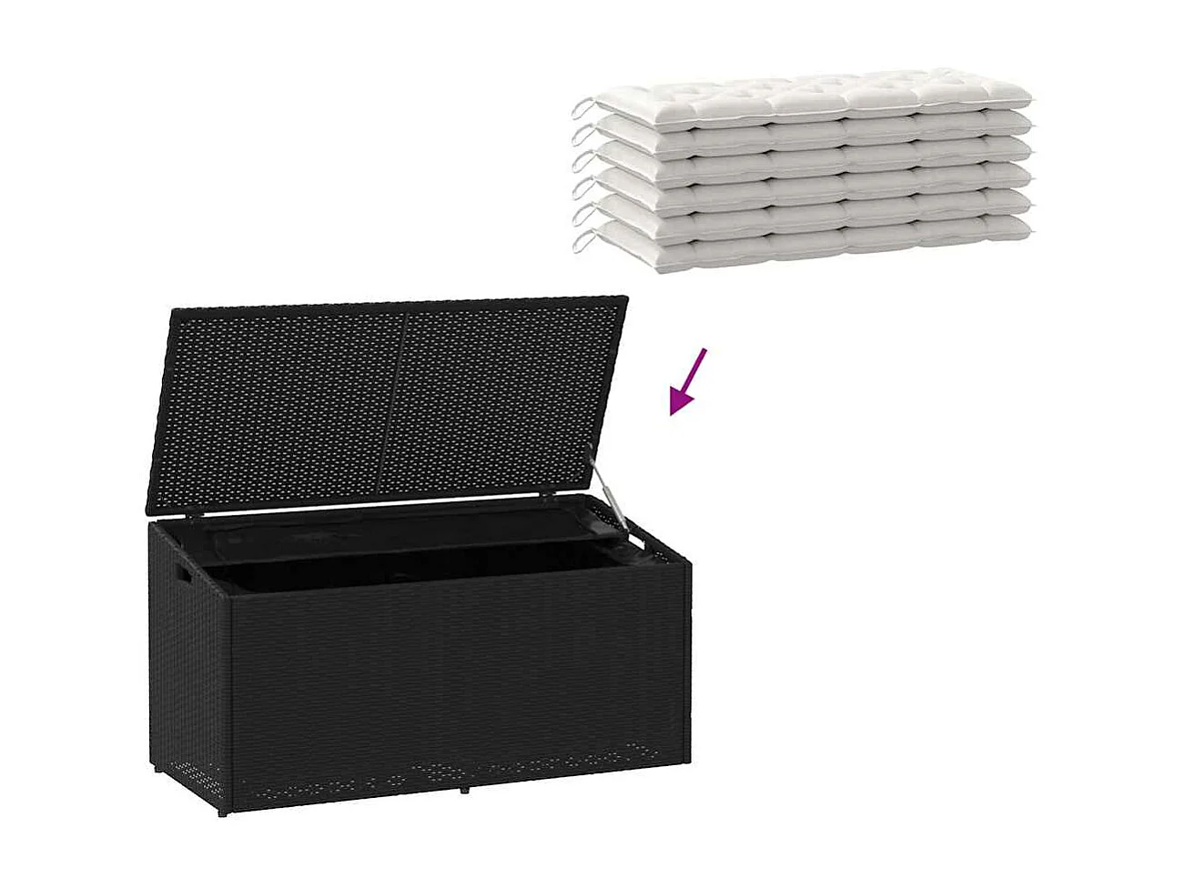 Coffre à coussins d'extérieur noir 100x55x55,5cm résine tressée