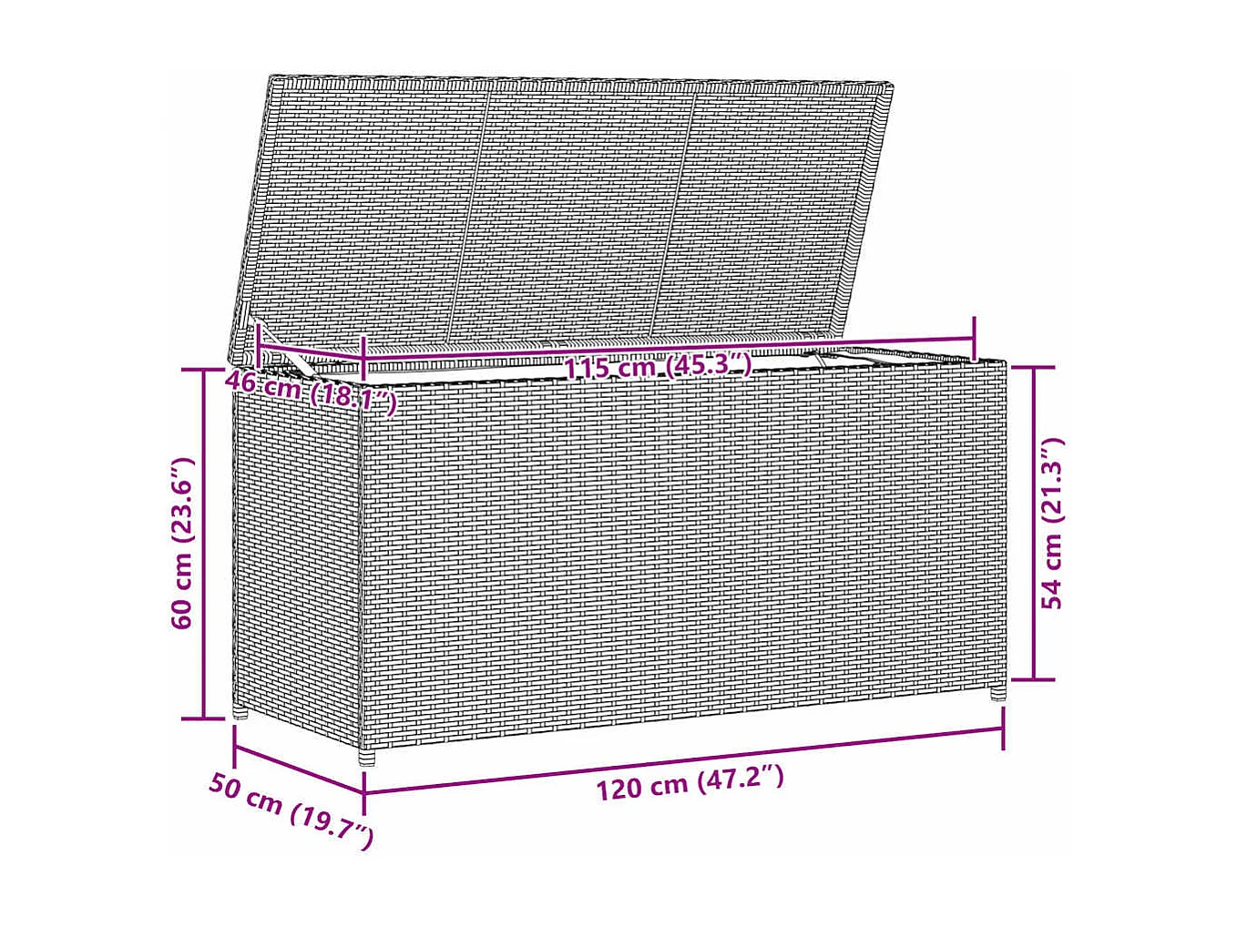 Boîte de rangement de jardin noir 120x50x60 cm résine tressée