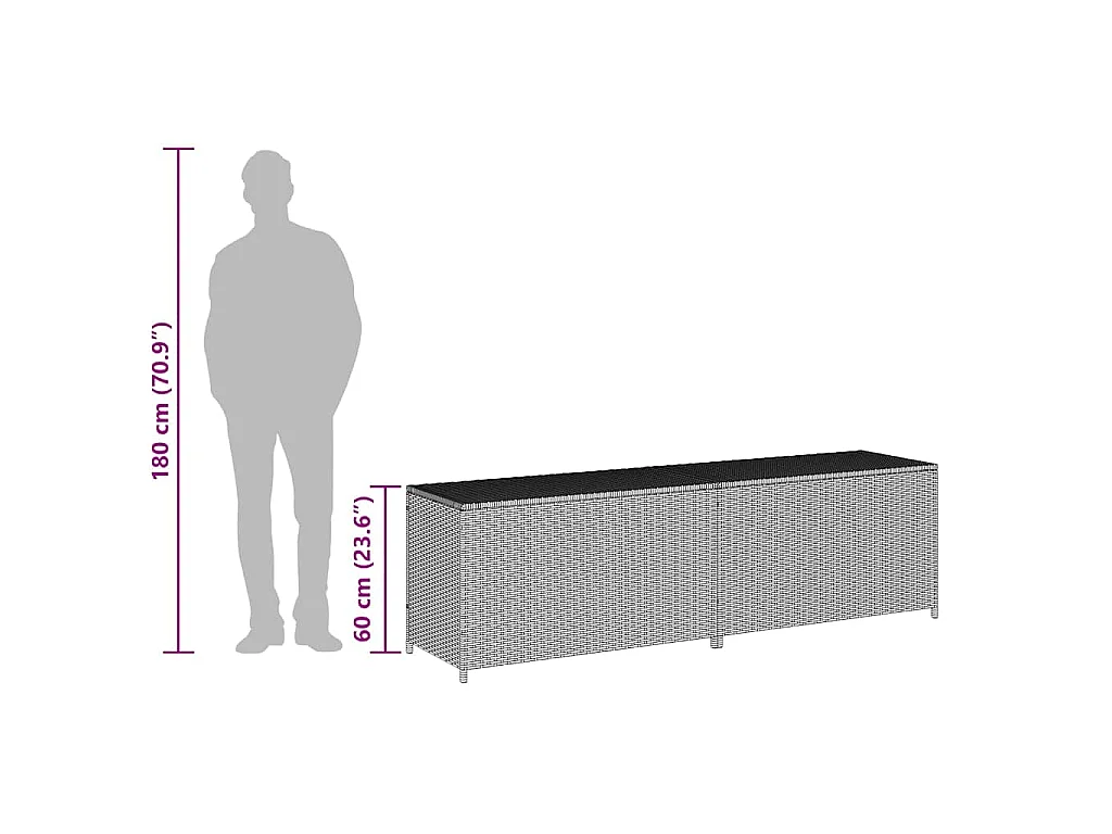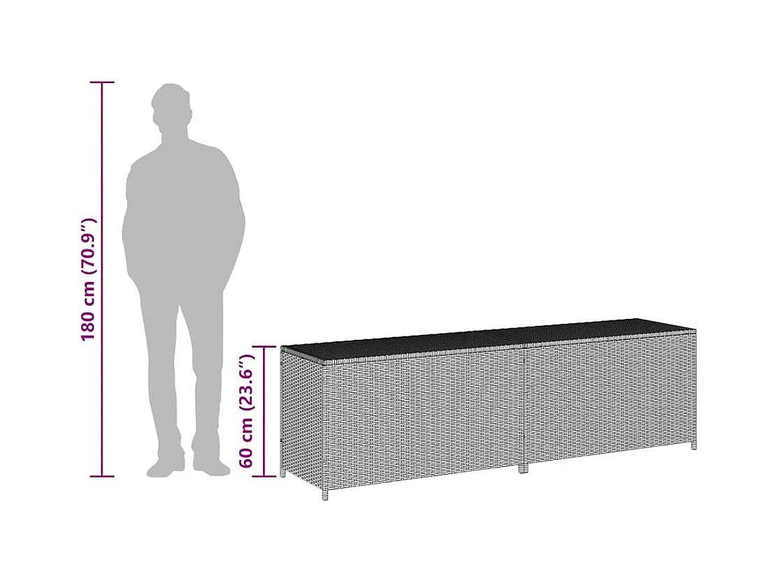 Boîte de rangement de jardin résine tressée 200x50x60 cm noir