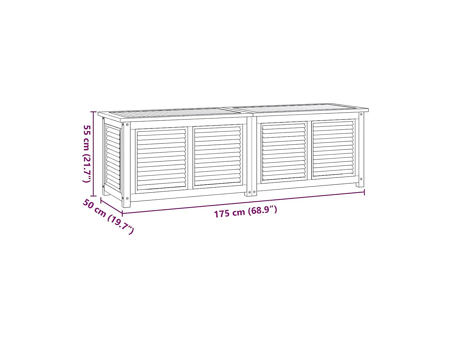 Boîte de rangement jardin et sac 175x50x55 cm bois massif teck
