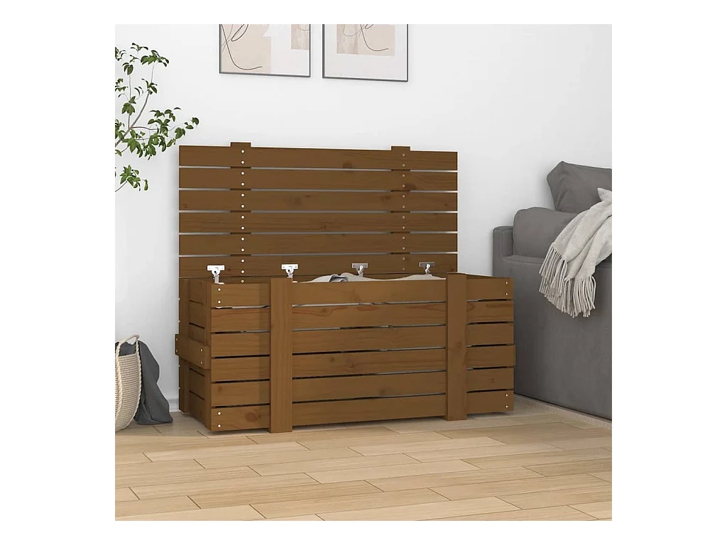 Boîte de rangement Marron miel 91x40,5x42 cm Bois massif pin