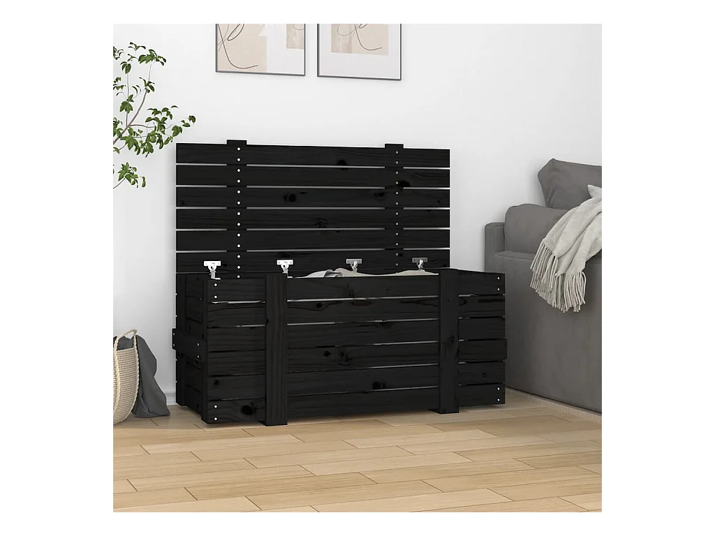 Boîte de rangement Noir 91x40,5x42 cm Bois massif de pin