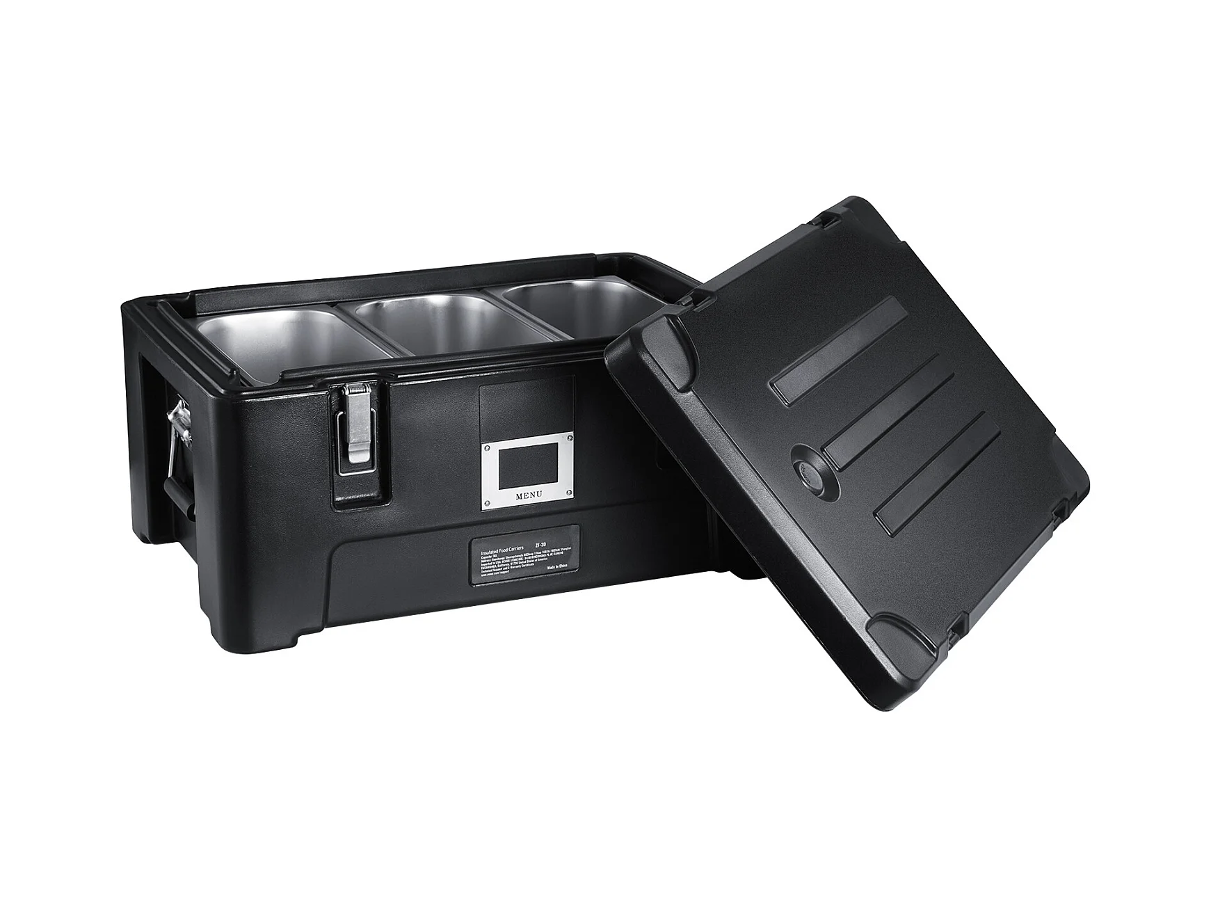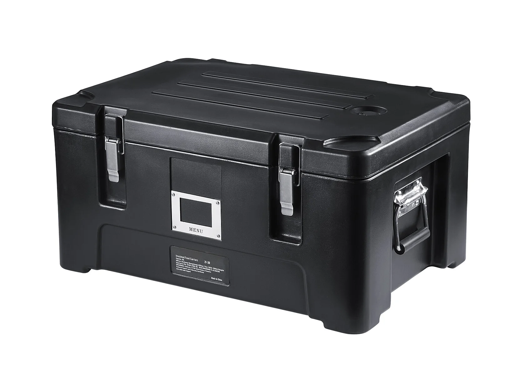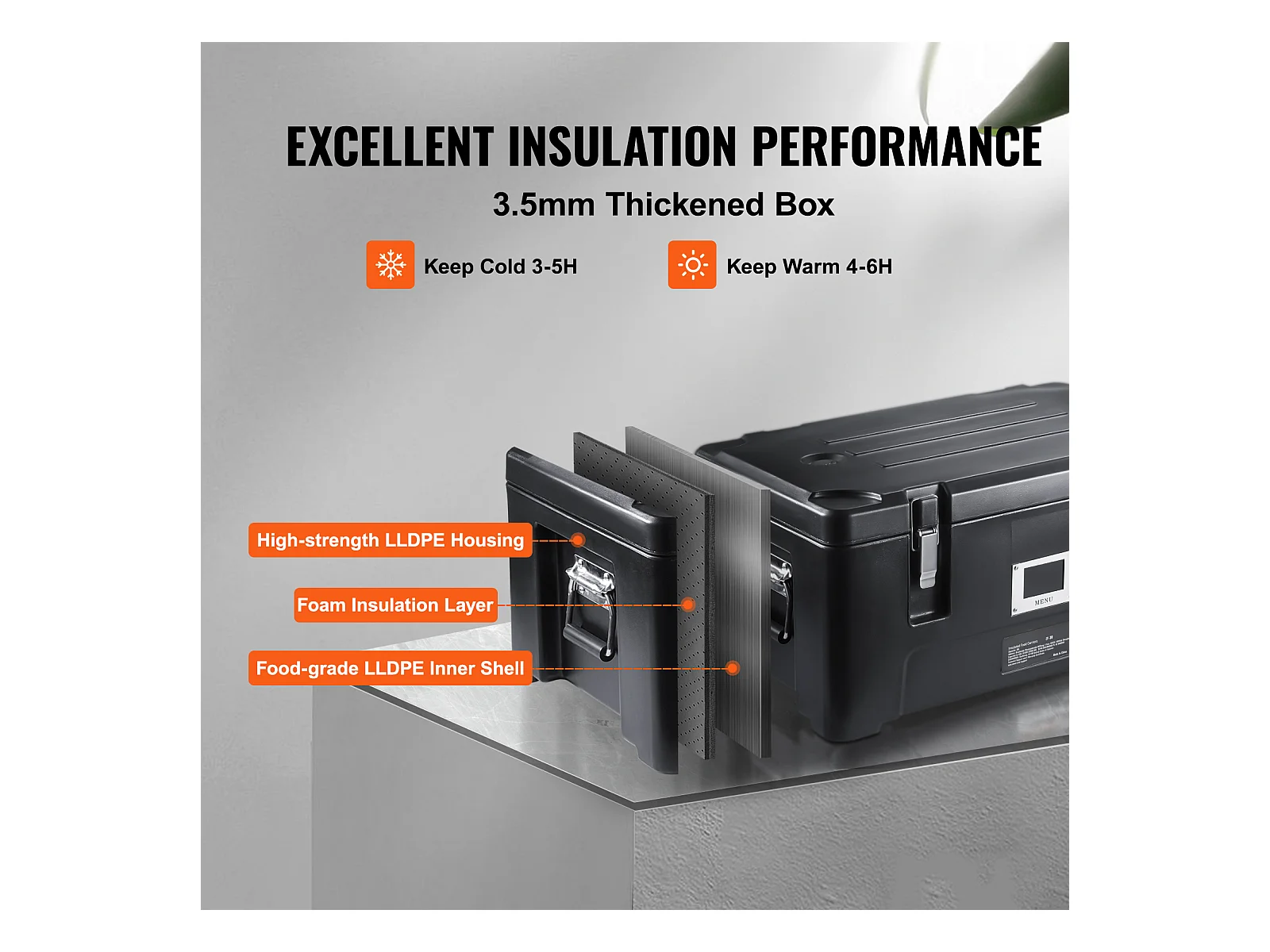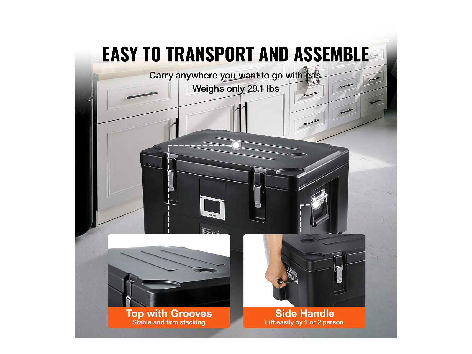 Boîte de Transport Isolé SucceBuy, Conteneur Alimentaire Isolé 78 L, Transport Portable Noir à Chargement Frontal