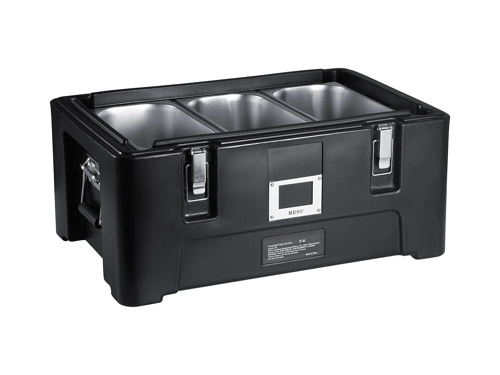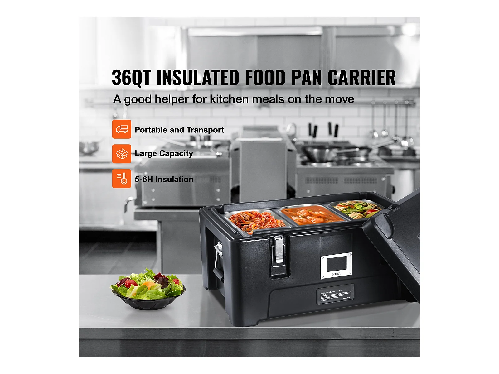 Boîte de Transport Isolé SucceBuy, Porte-Plateau Isolé, Chargement Supérieur Empilable de 34 L, avec 3 poêles, noir