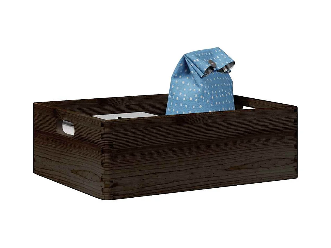 Boîte en bois avec couvercle et poignées noir bois pin massif