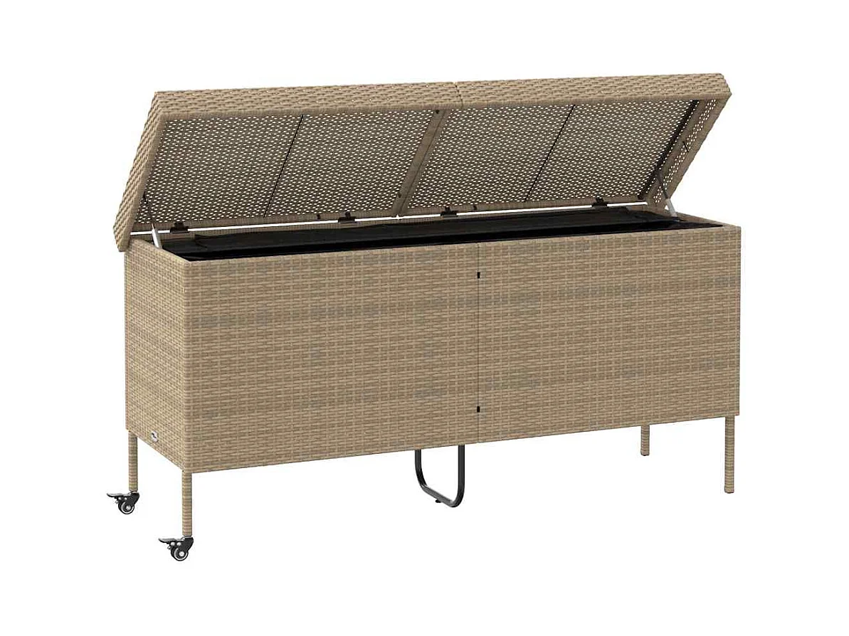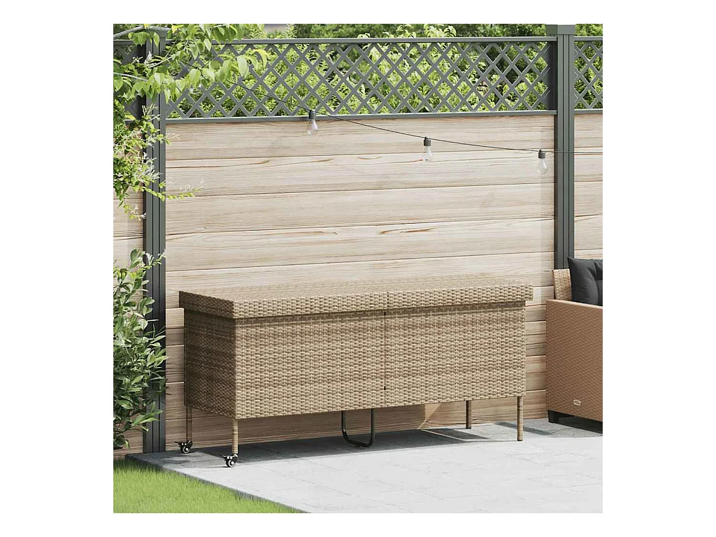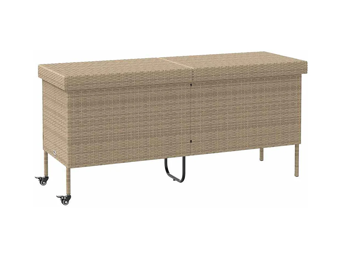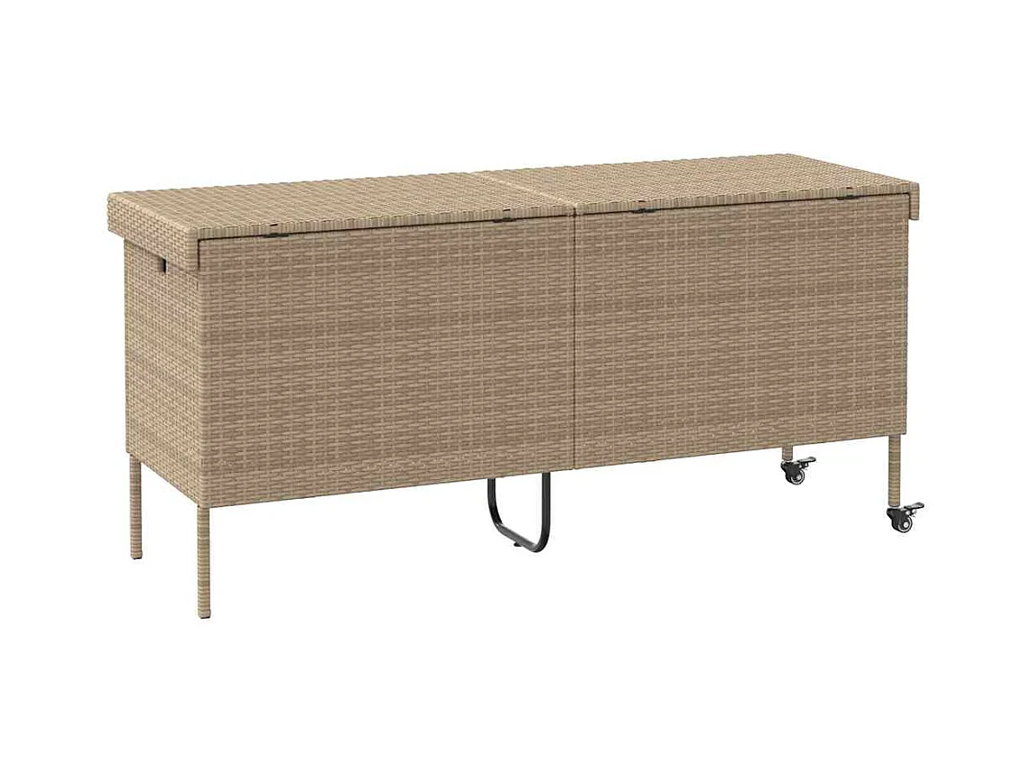 Boîte rangement jardin roues beige 160x55x75 cm résine tressée