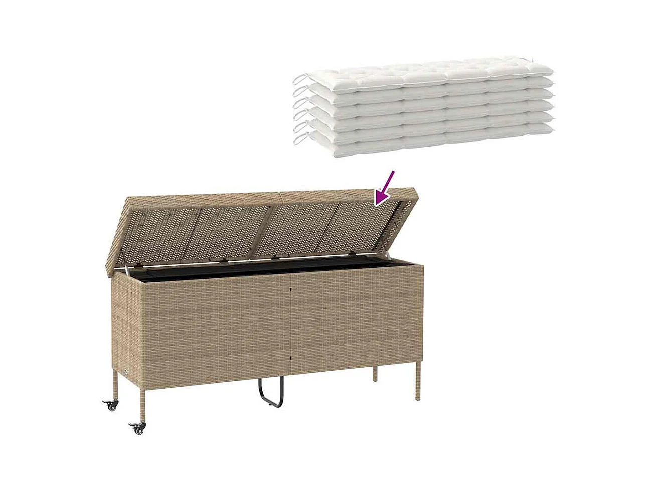 Coffre à coussins d'extérieur beige 100x55x55,5 cm polyrotin