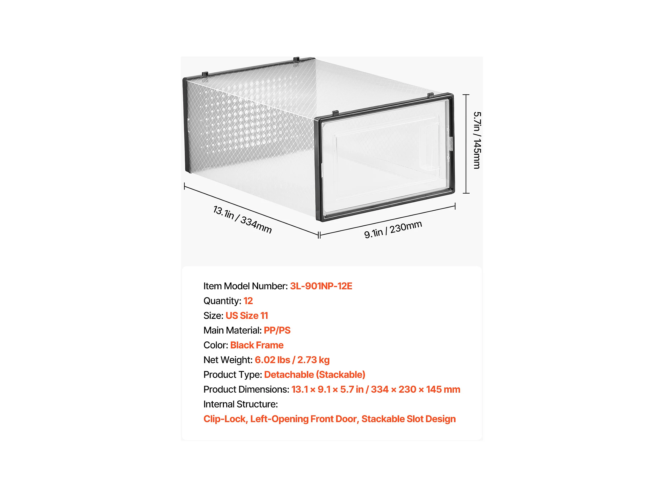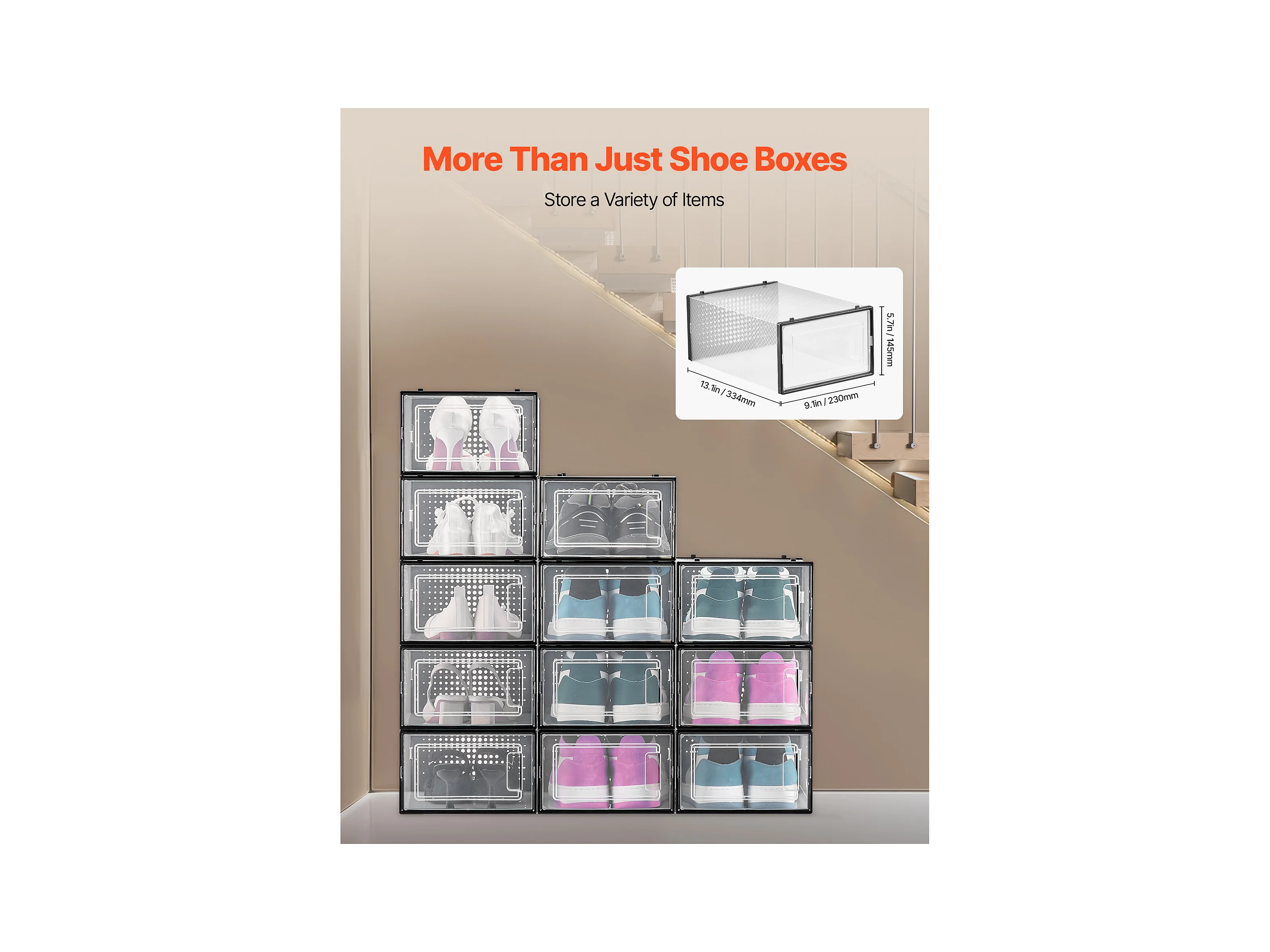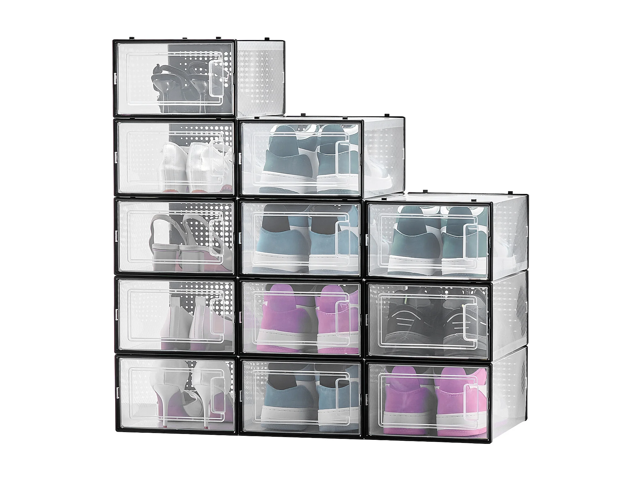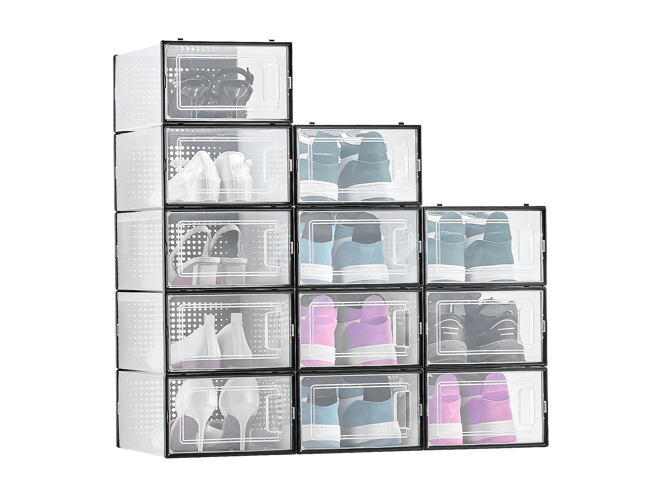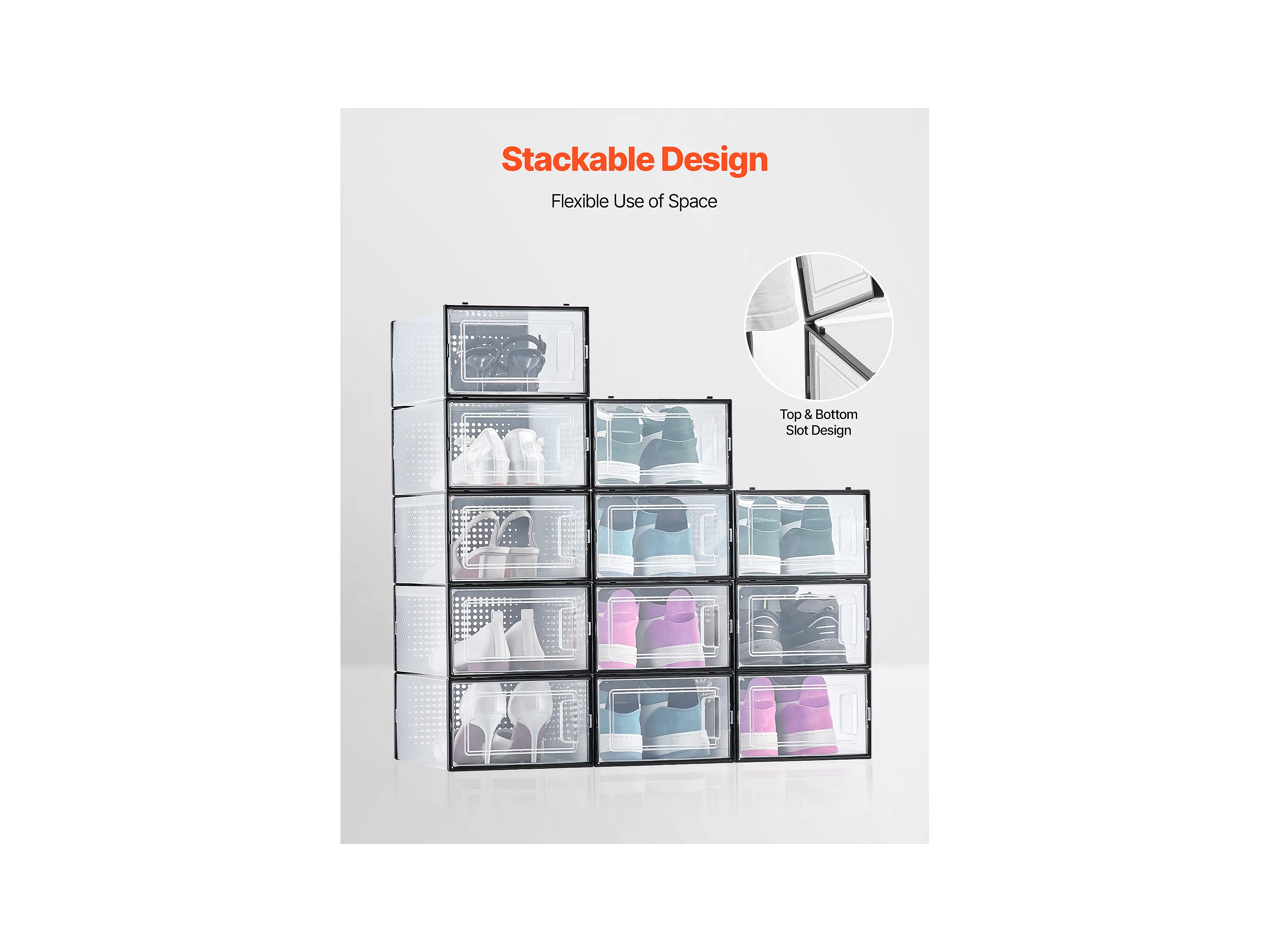 Boîtes à Chaussures SucceBuy Empilables Lot de 12 Pièces, Rangement pour Chaussures jusqu'à la Taille US 11, Organisateur Modulaire en Plastique