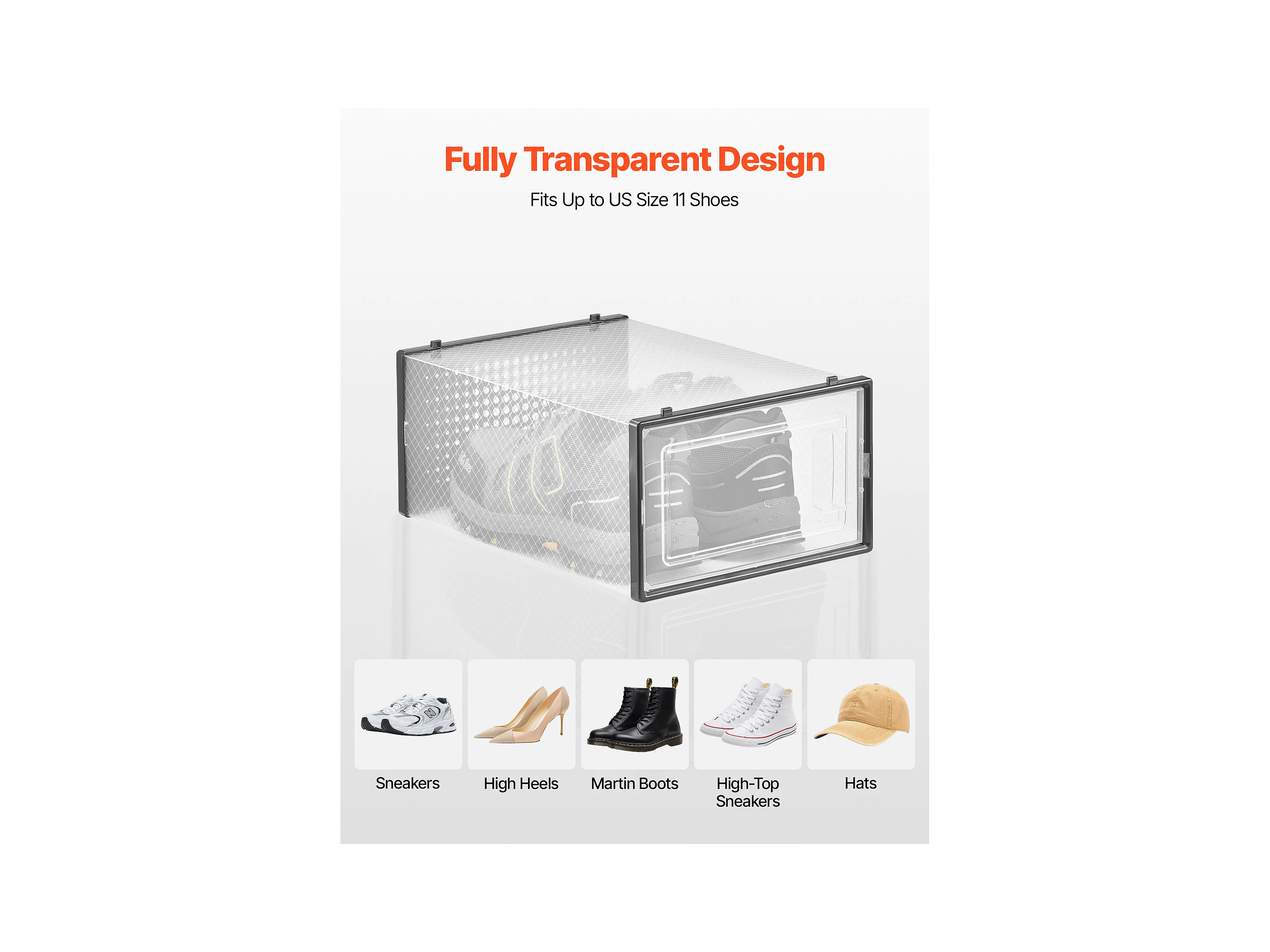 Boîtes à Chaussures Empilables SucceBuy Lot de 6, Adaptées aux Pointures jusqu'à US 13, en Plastique Robuste avec Porte Magnétique, Idéales pour Talons