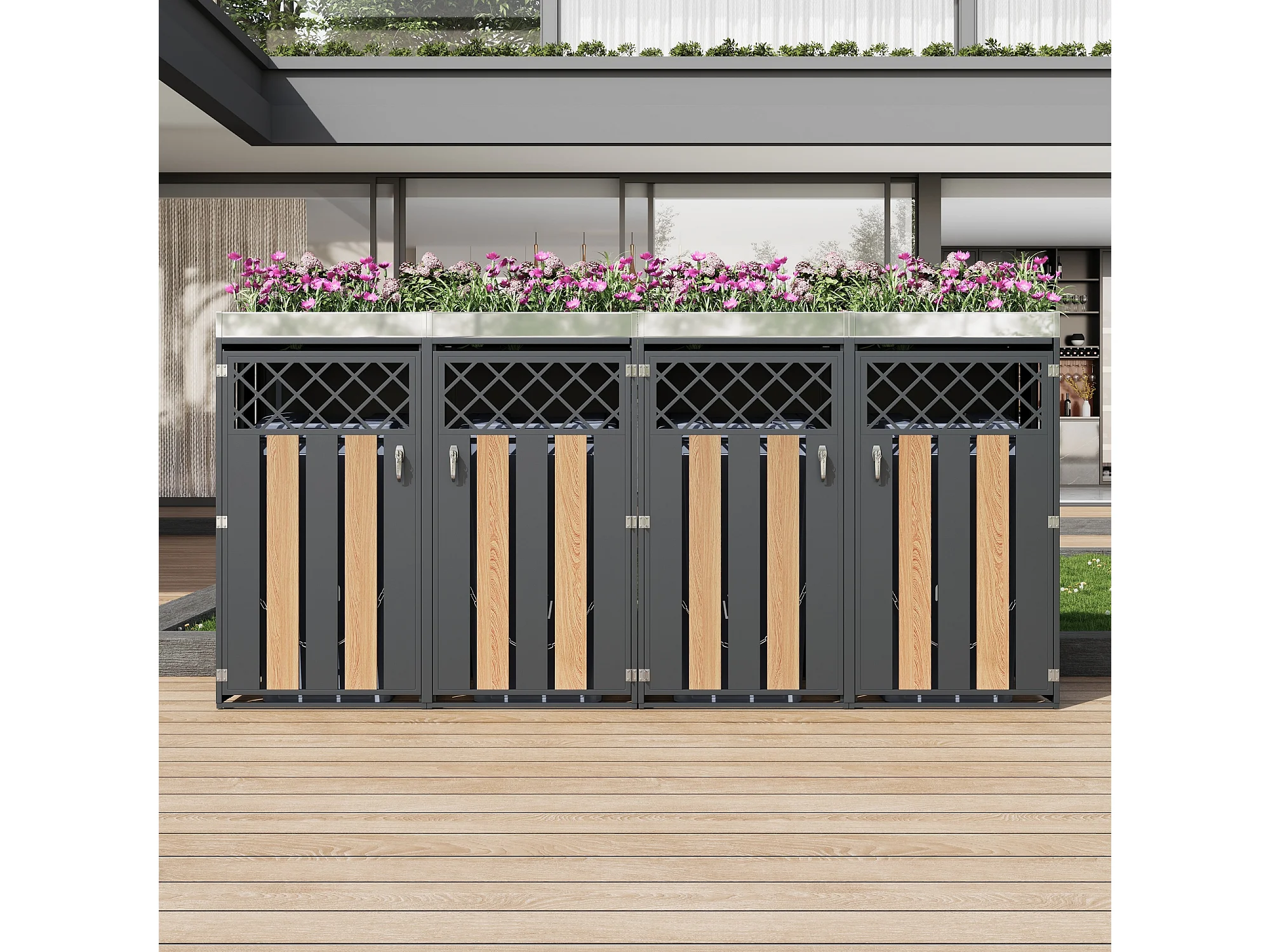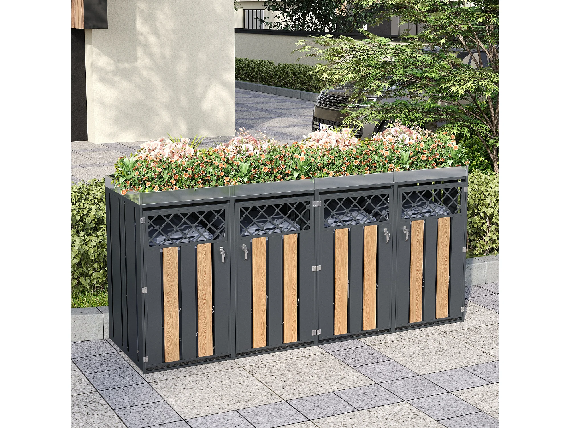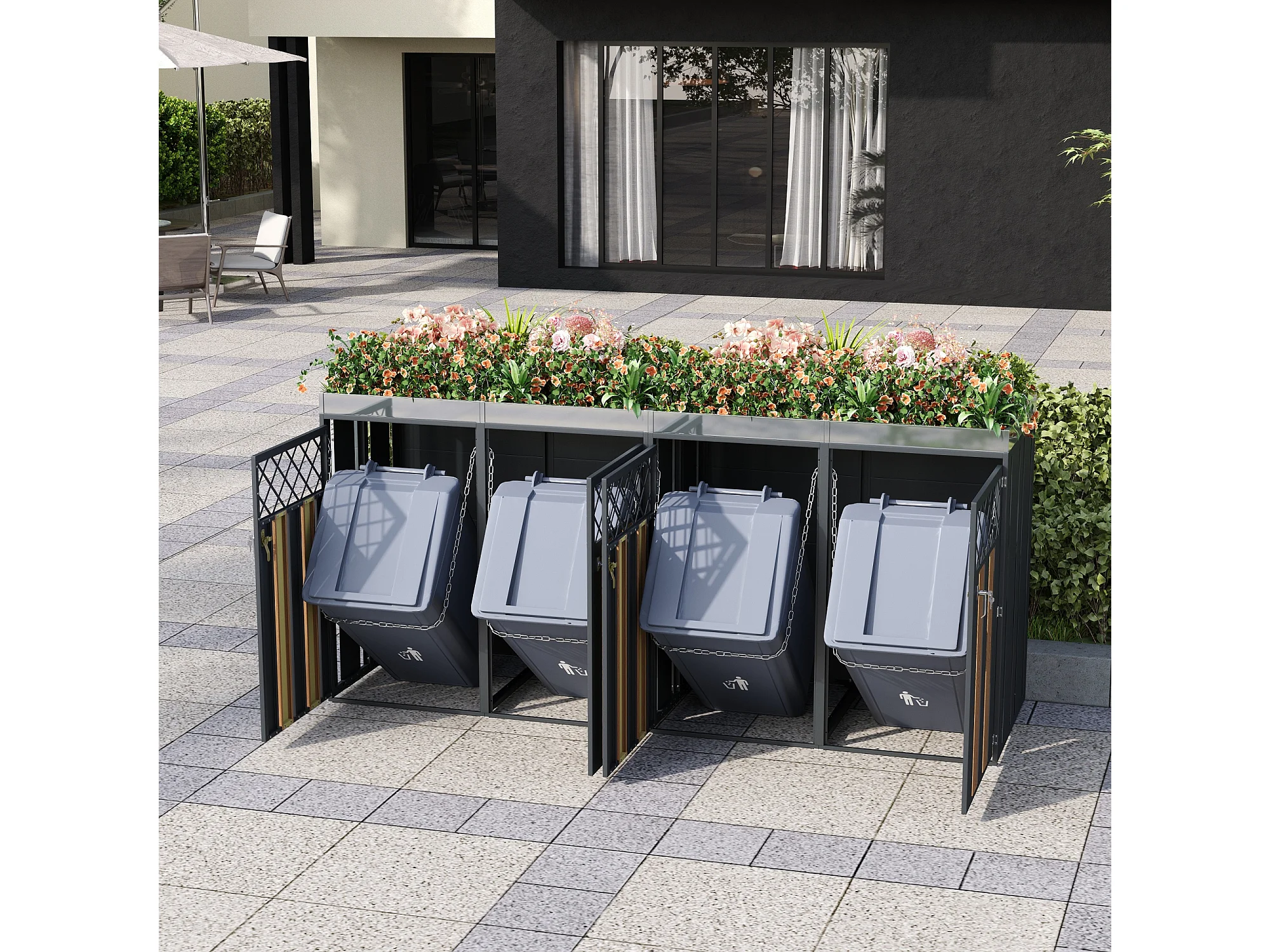 Boîtier pour poubelle avec trous de ventilation - 2 x 132 x 80 x 124.5 cm - avec 2 portes - métal - gris