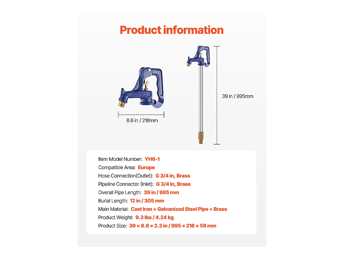 Borne d'Incendie Antigel SucceBuy, Longueur de 99cm, Profondeur d'Enfouissement de 30cm, Fonte Robuste