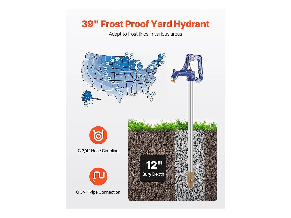 Robinet d'Extérieur Antigel SucceBuy, Tête de Remplacement pour Bouche d'Incendie de Jardin Résistante au Gel, Bleu
