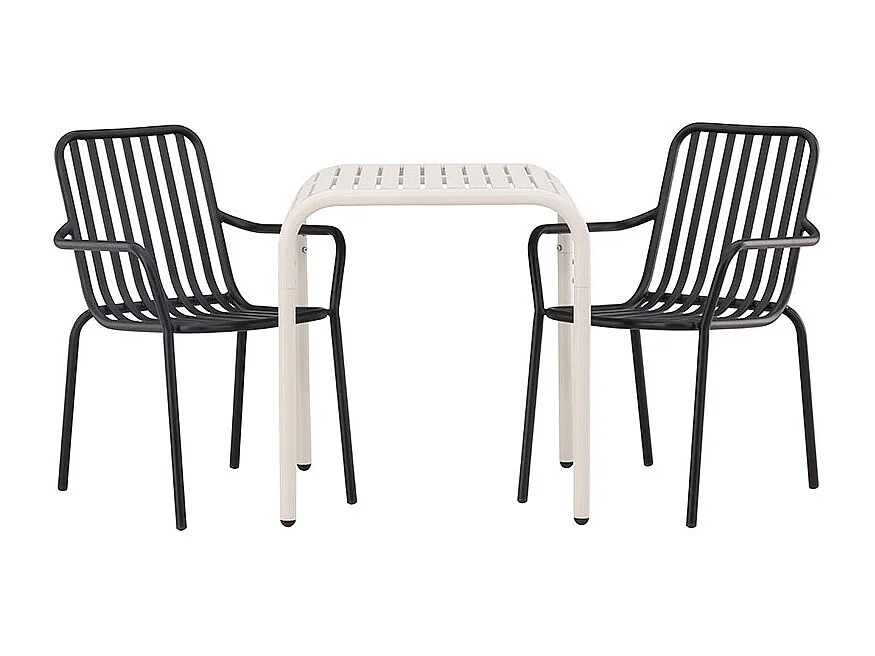 Borneo set de jardin table 70x70cm beige, 2 chaises noires.