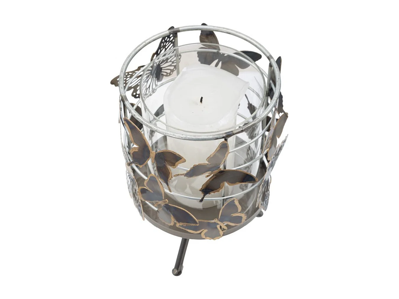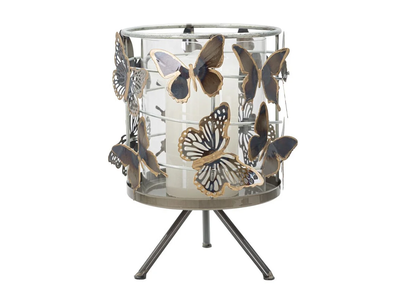 Bougeoir Design en Métal "Papillons" 39cm Multicolore