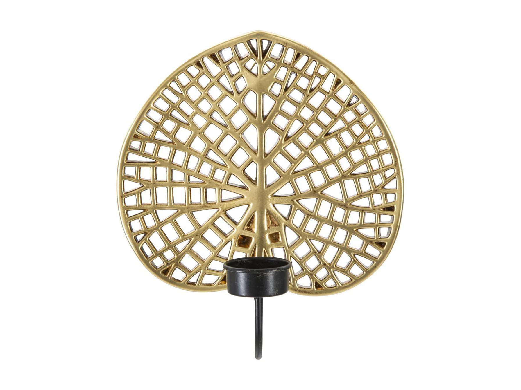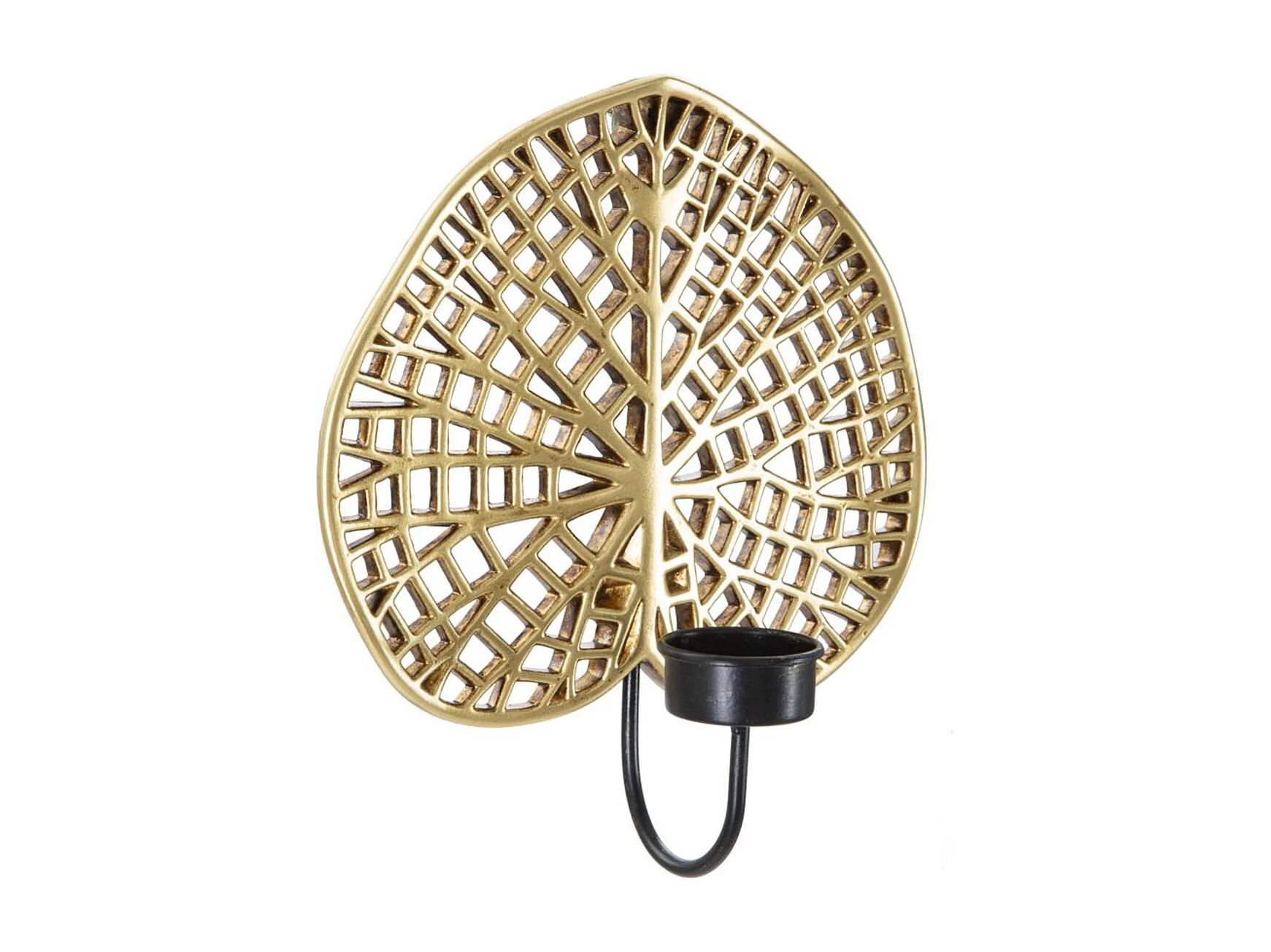 Bougeoir Mural Design "Feuille de Palmier" 31cm Or