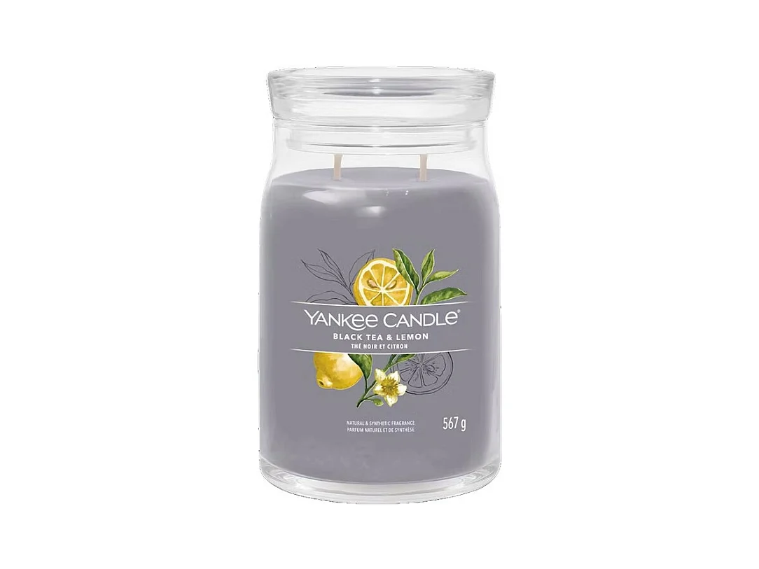 Bougie parfumée en grand pot, Black Tea and Lemon, gris 567 gr, Signature