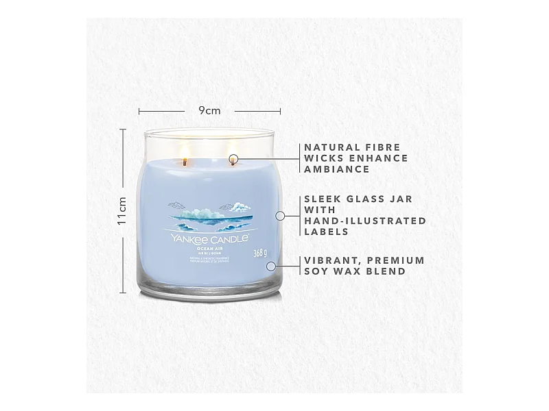 Bougie parfumée en pot moyen, Ocean Air, azur 368 gr, Signature
