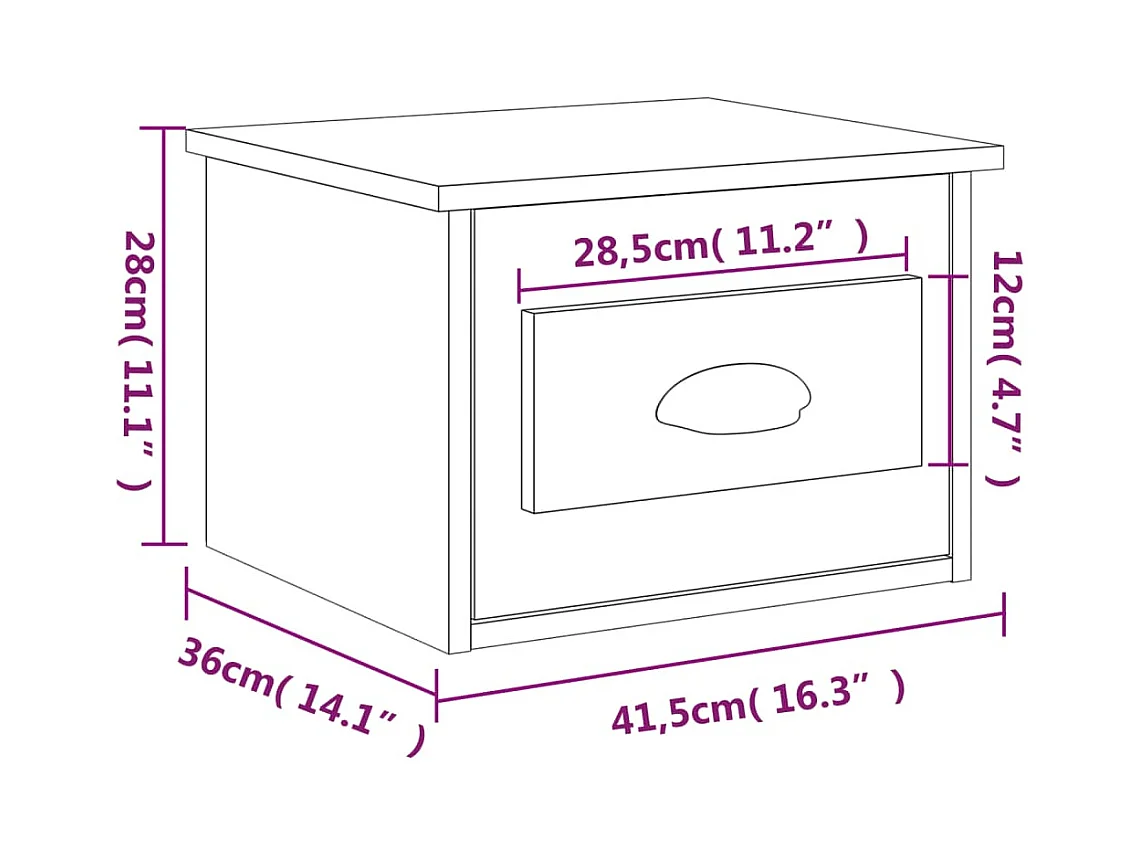 Inez Table de chevet murale chêne marron 41,5x36x53 cm