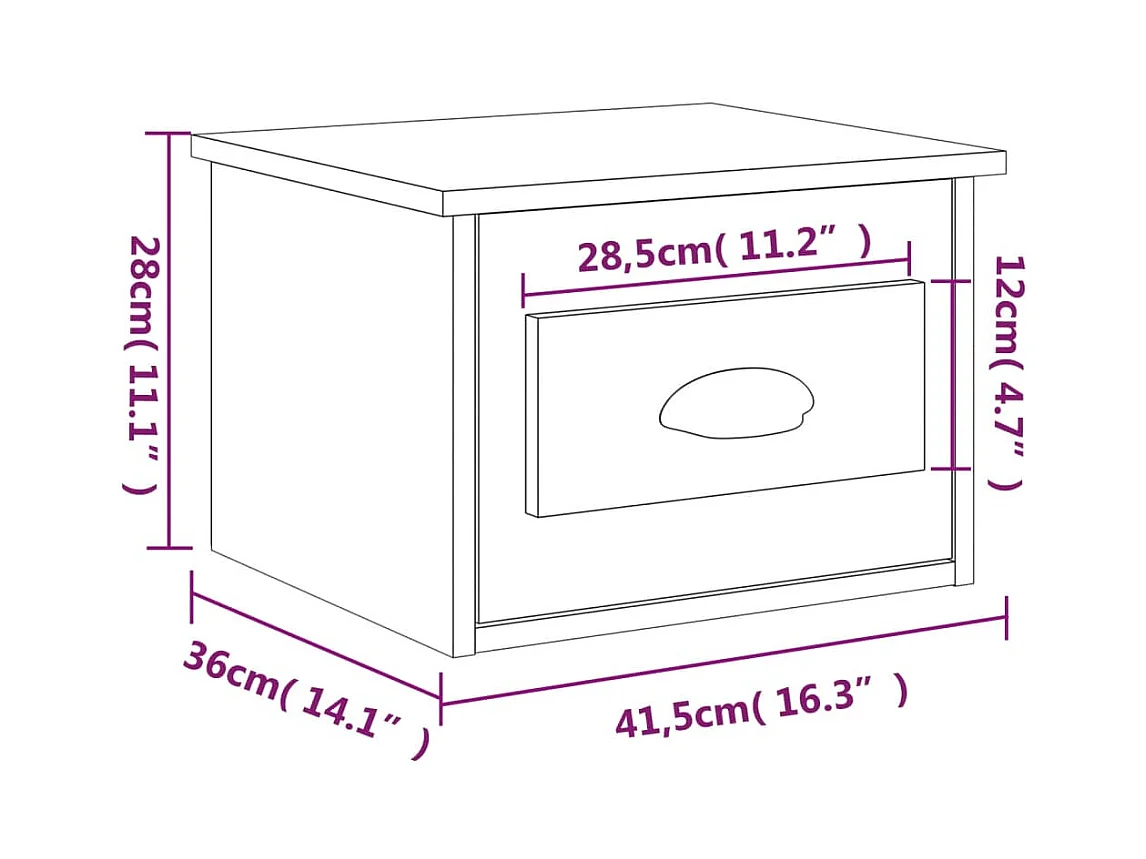 Inez Table de chevet murale noir 41,5x36x53 cm